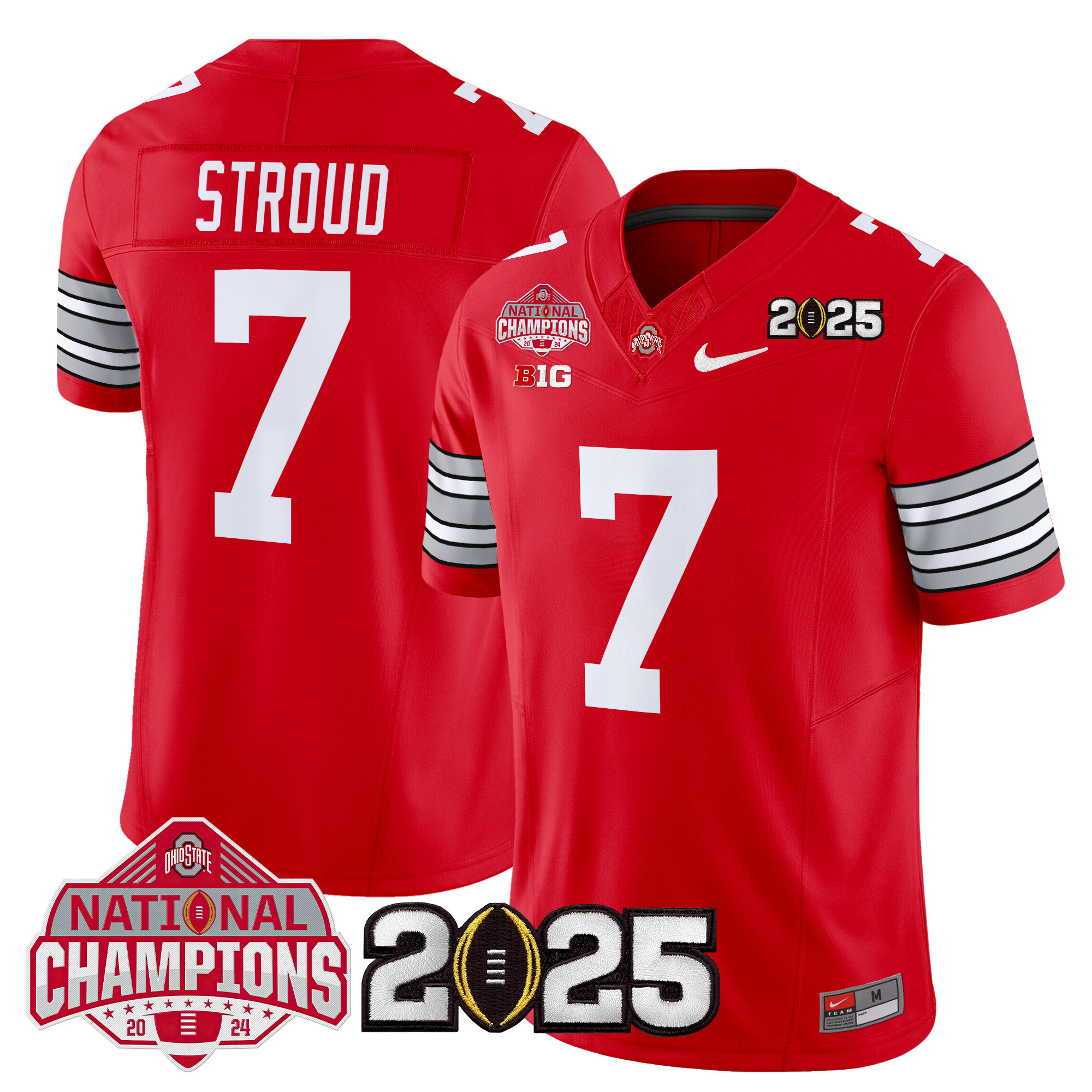 #1 Buckeyes Men’s Ohio State Buckeyes ‘Heritage Stripe’ 2025 National Champions Patch Vapor Limited Red Jersey – All Stitched