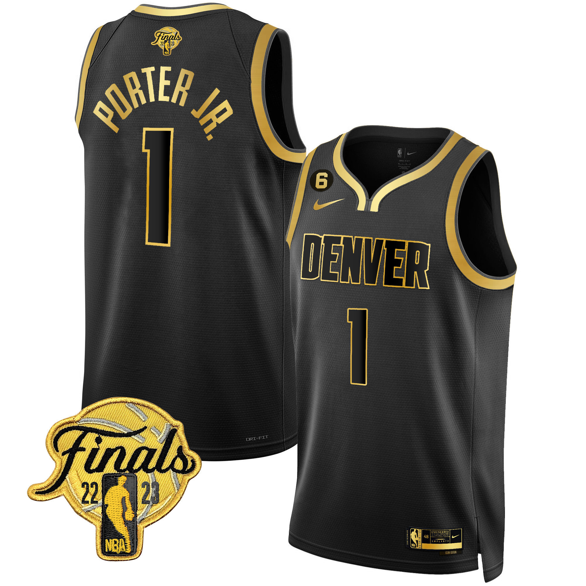 Aaron Gordon Men’s Denver Nuggets 2023 Finals Patch Collection Black Gold Jersey – All Stitched