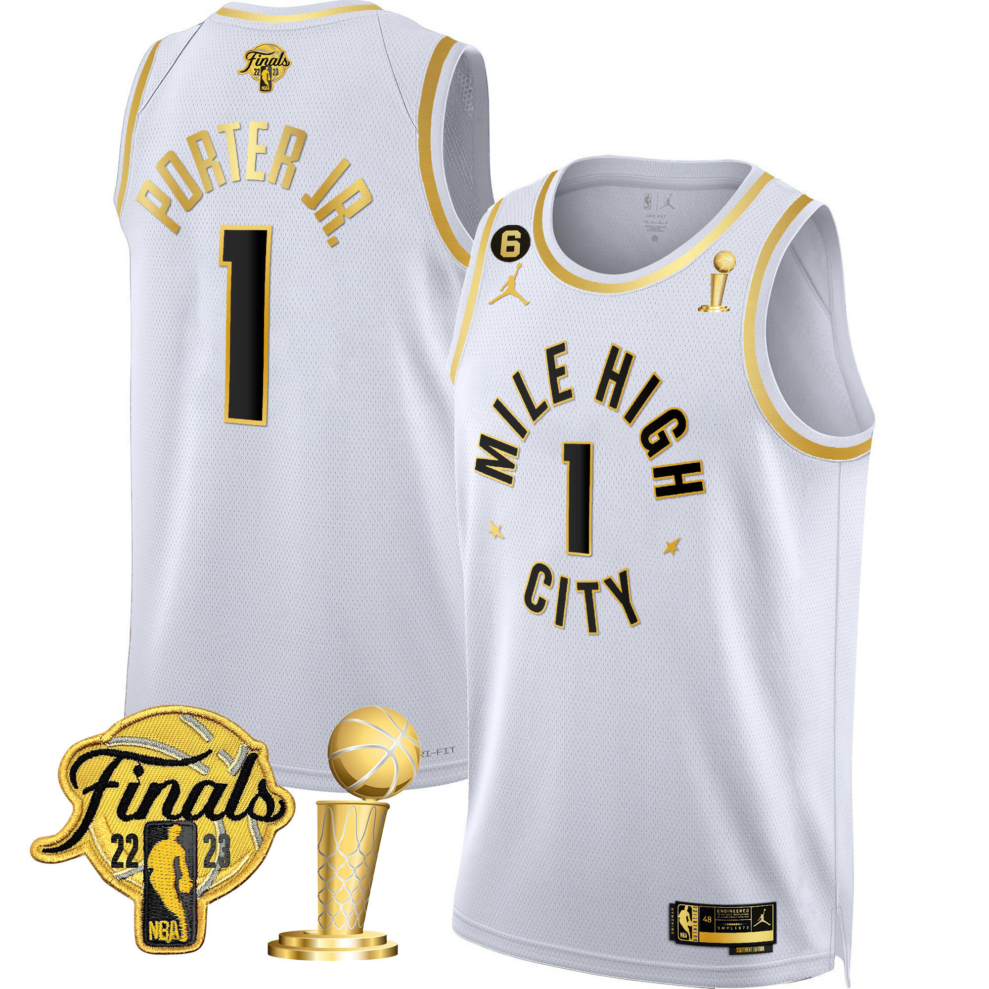 Aaron Gordon Youth’s Denver Nuggets 2023 Finals & Champions Patch Gold Statement White Jersey – All Stitched