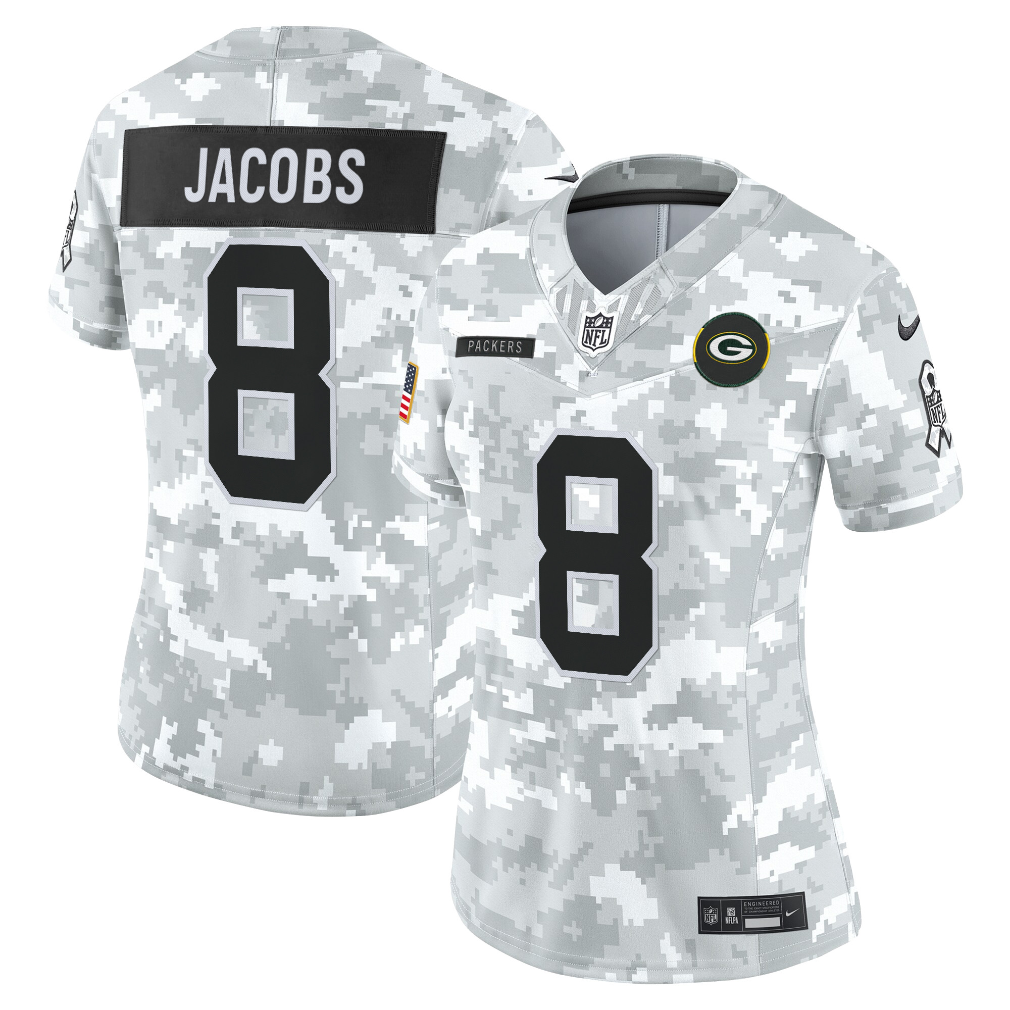 AJ Dillon Women’s Green Bay Packers 2025 Salute to Service Vapor Limited Arctic Camo Jersey – All Stitched