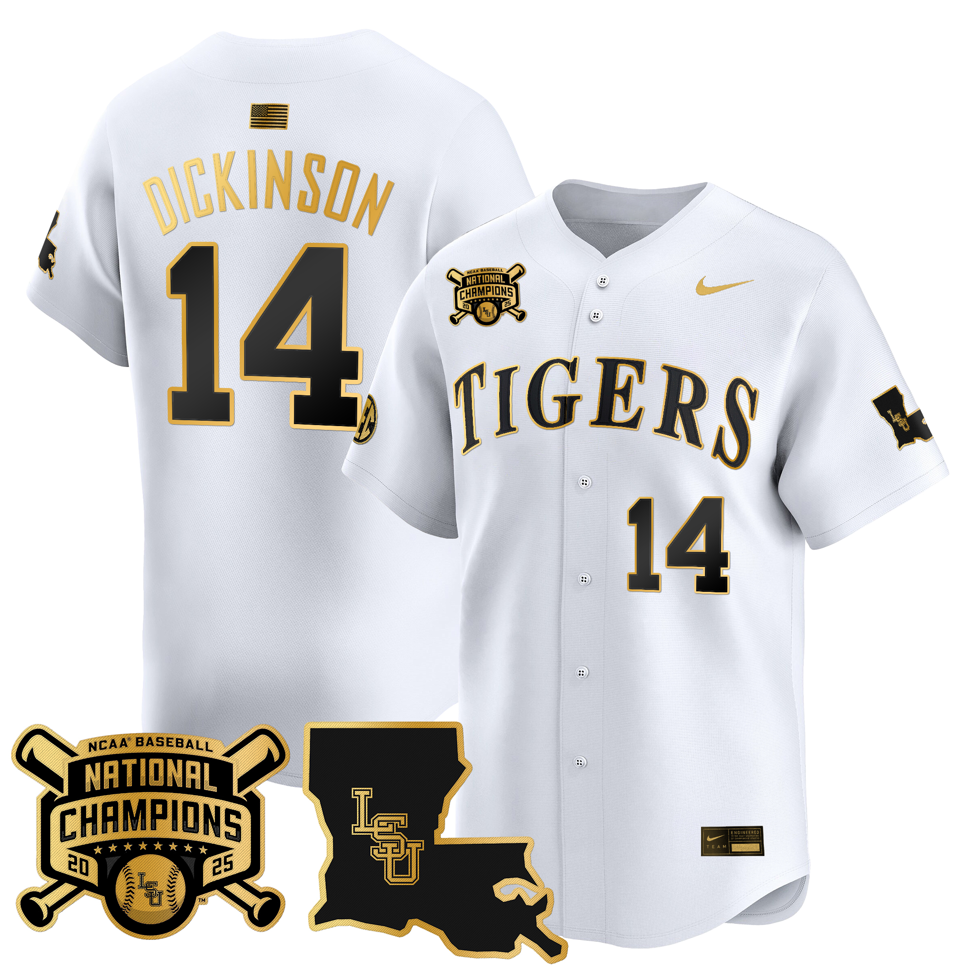 Anthony Eyanson Men’s LSU Tigers 2025 College World Series Champions Gold Vapor Premier Limited White Gold Jersey – All Stitched