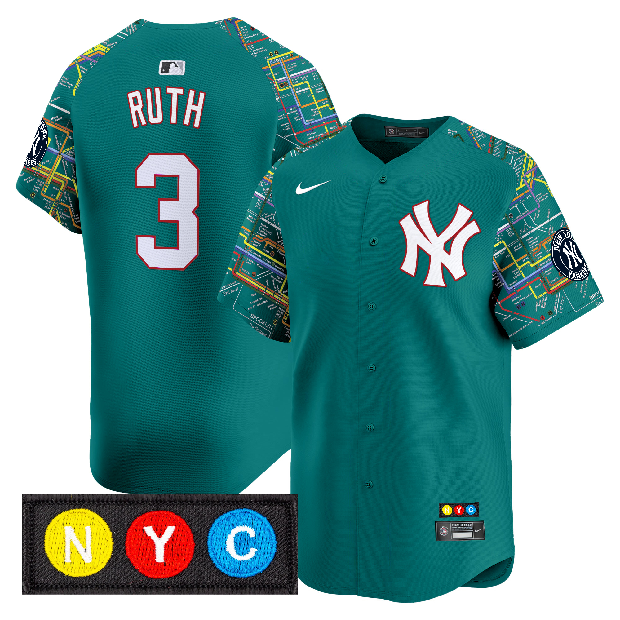 Babe Ruth Men’s New York Yankees Subway Style Vapor Premier Limited Lexington Line Jersey – Stitched