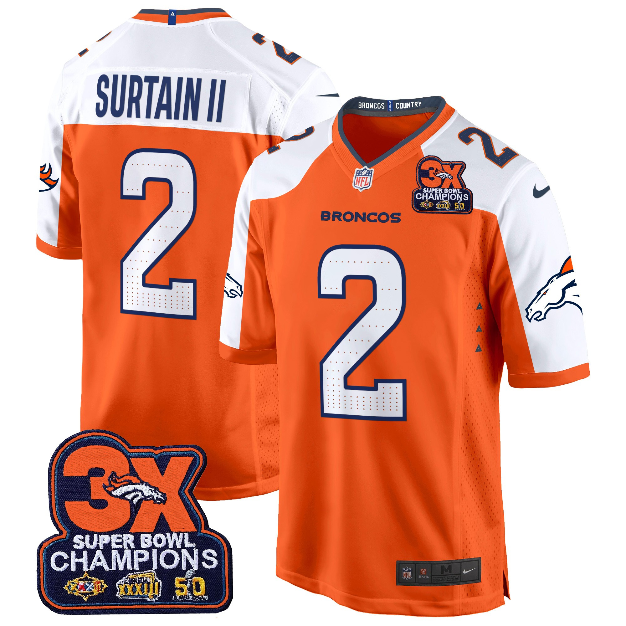Bo Nix Men’s Denver Broncos 3-Time Champions Patch Game Orange Alternate Jersey – Al Stitched