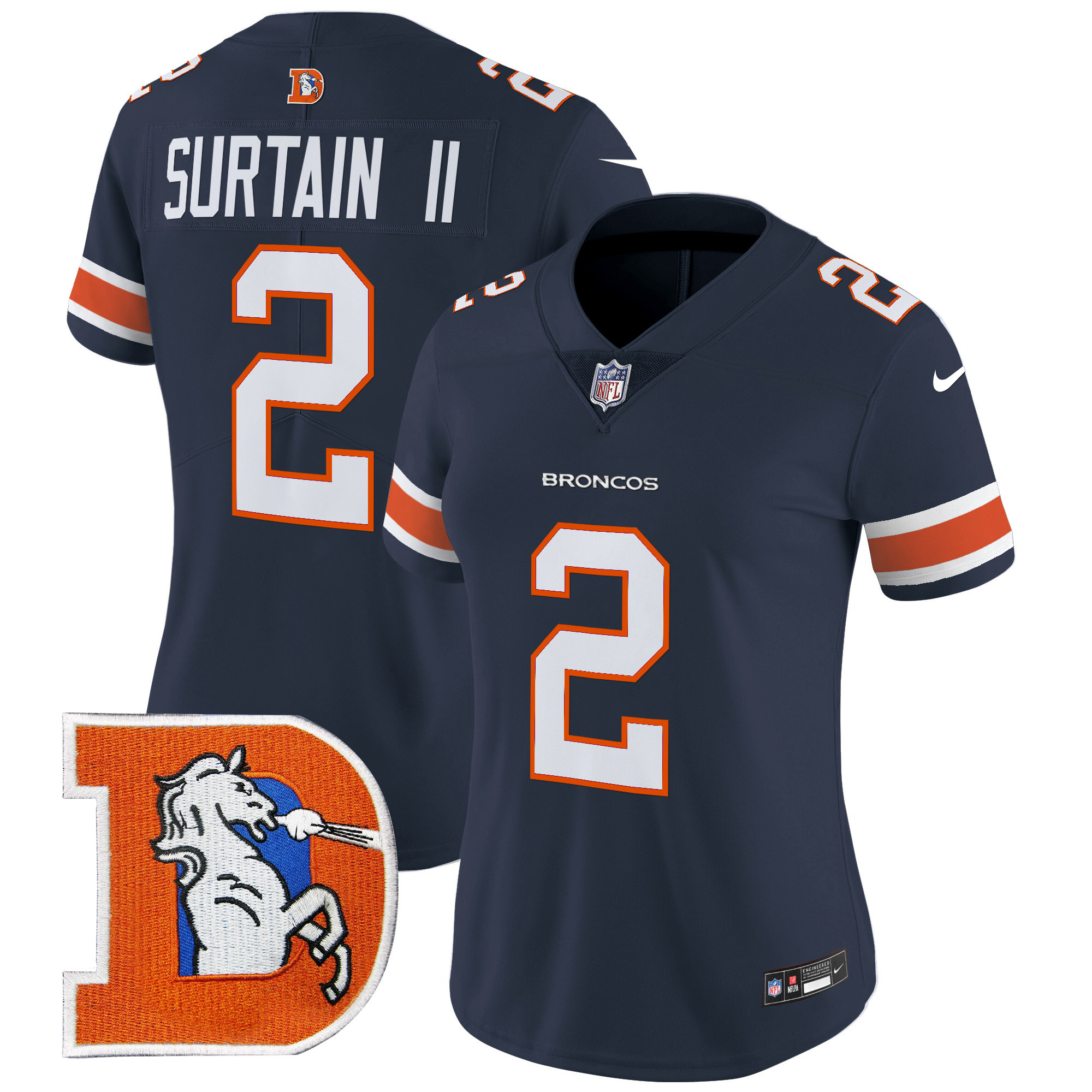Bo Nix Women’s Denver Broncos Throwback Vapor Limited Navy Jersey V2 – All Stitched