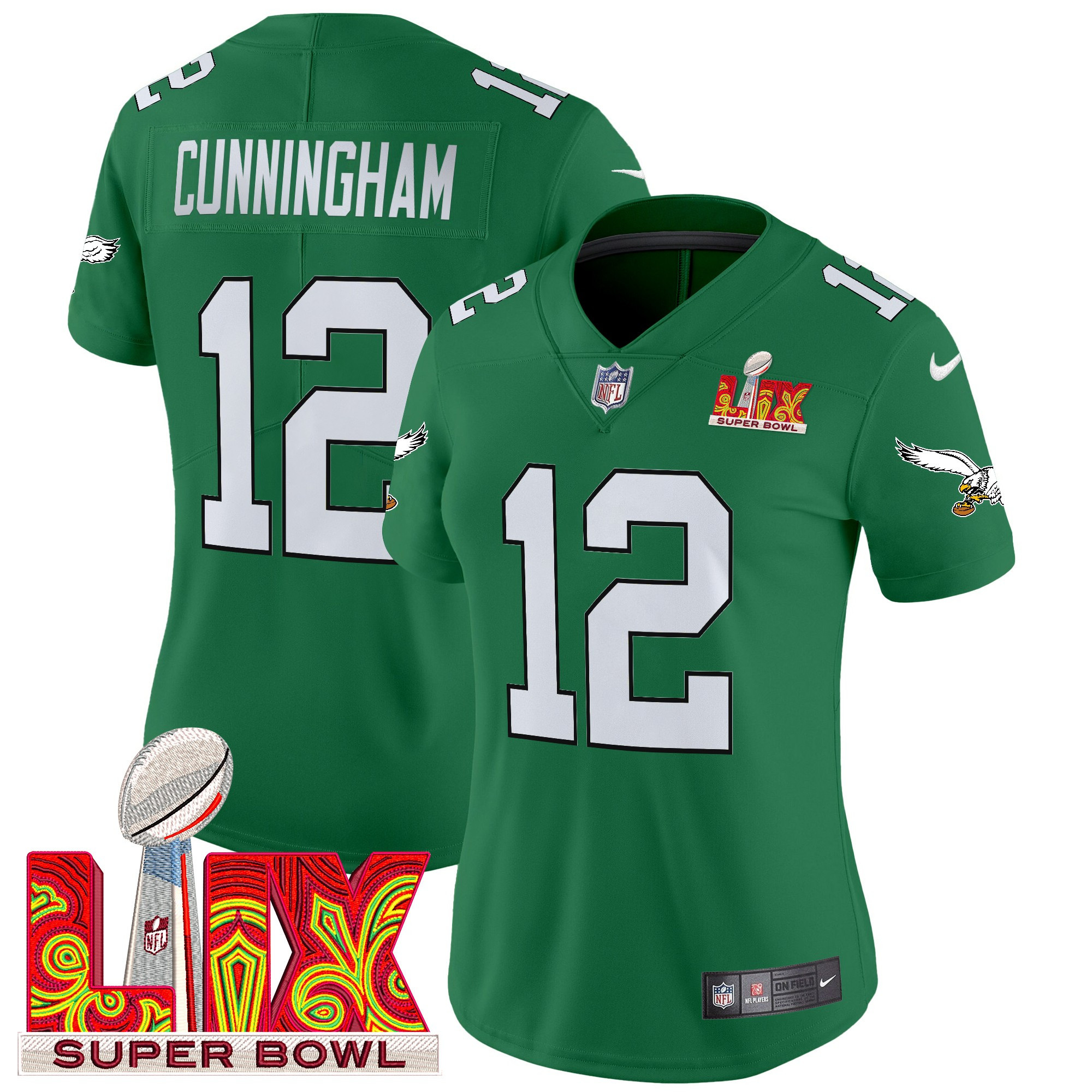 Brandon Graham Women’s Philadelphia Eagles Kelly Green Super Bowl LIX Patch Vapor Limited Kelly Green Jersey – All Stitched