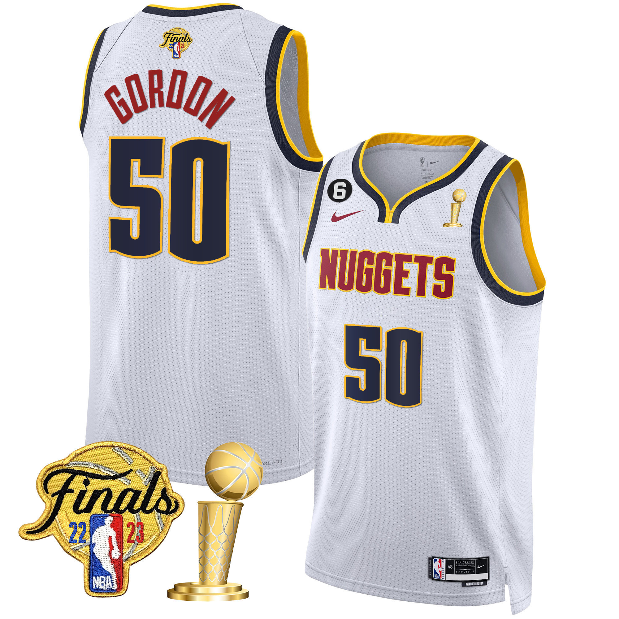Bruce Brown Youth’s Denver Nuggets 2023 Finals & Champions Patch Gold Association Jersey – All Stitched