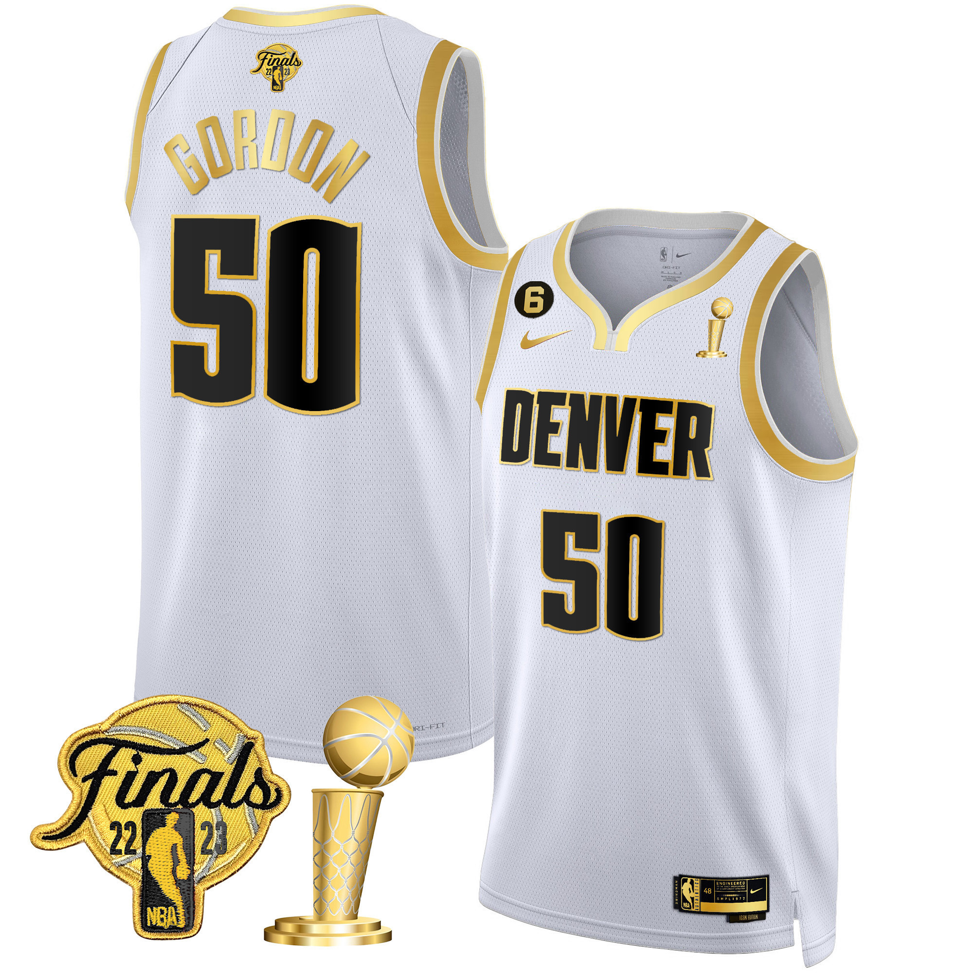 Bruce Brown Youth’s Denver Nuggets 2023 Finals & Champions Patch White Gold Jersey – All Stitched