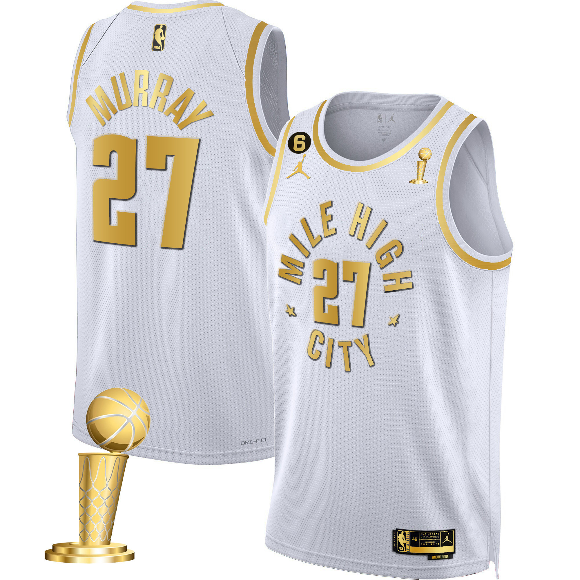 Caldwell-Pope Men’s Denver Nuggets 2023 Champions Black & White Gold Statement White Jersey – All Stitched