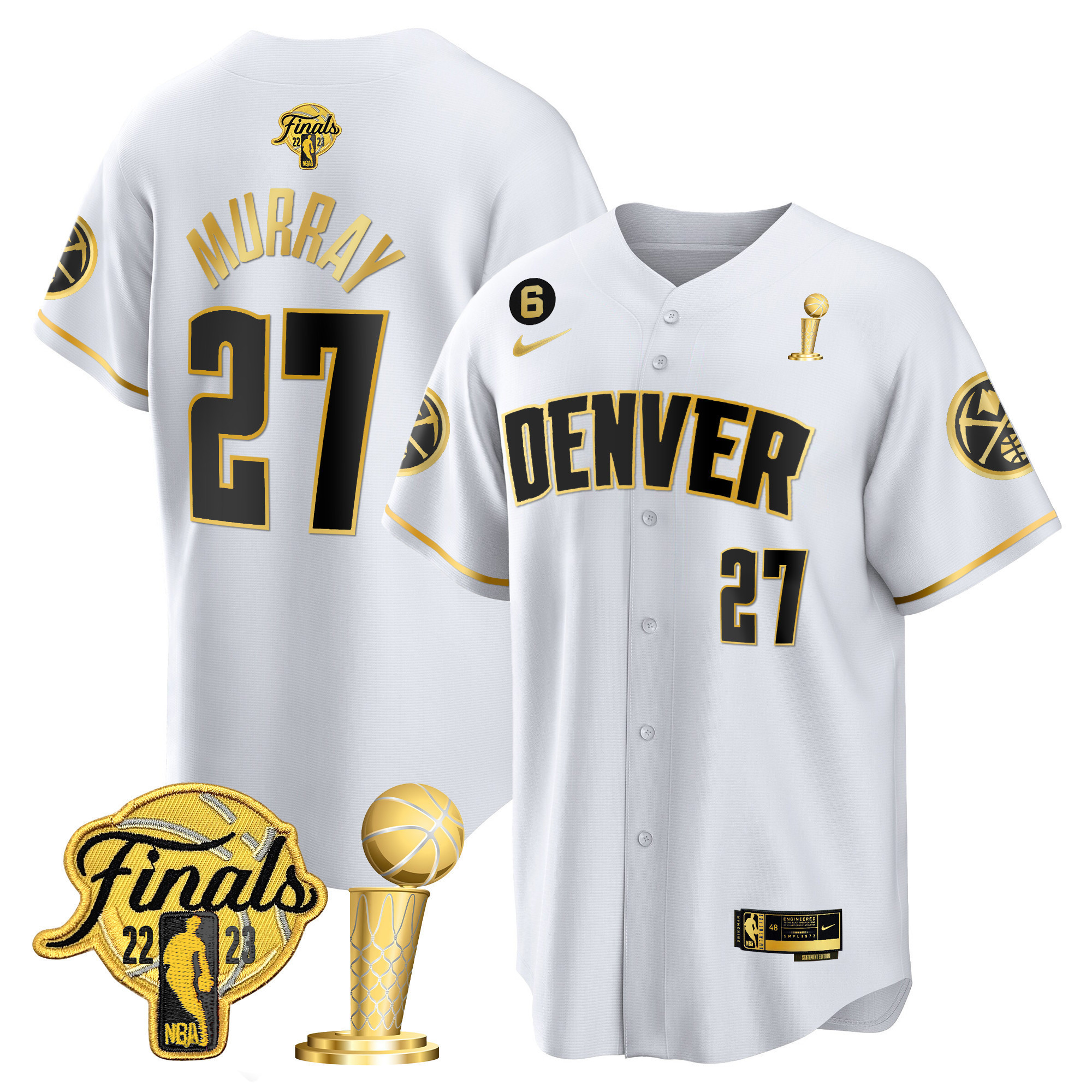 Caldwell-Pope Men’s Denver Nuggets 2023 Finals & Champions Patch Cool Base White Gold Jersey – All Stitched