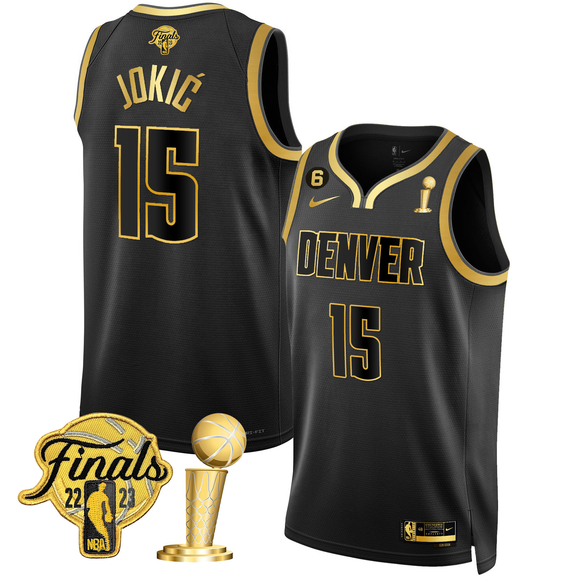 Caldwell-Pope Youth’s Denver Nuggets 2023 Finals & Champions Patch Black Gold Jersey – All Stitched
