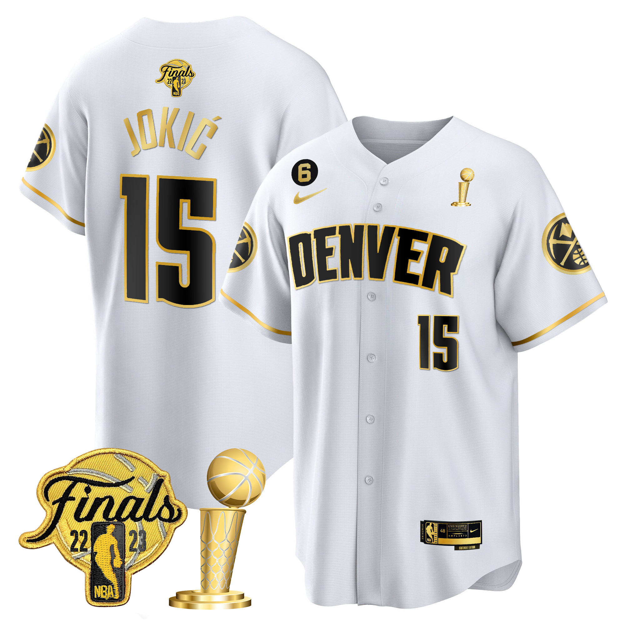 Caldwell-Pope Youth’s Denver Nuggets 2023 Finals & Champions Patch Cool Base White Gold Jersey – All Stitched