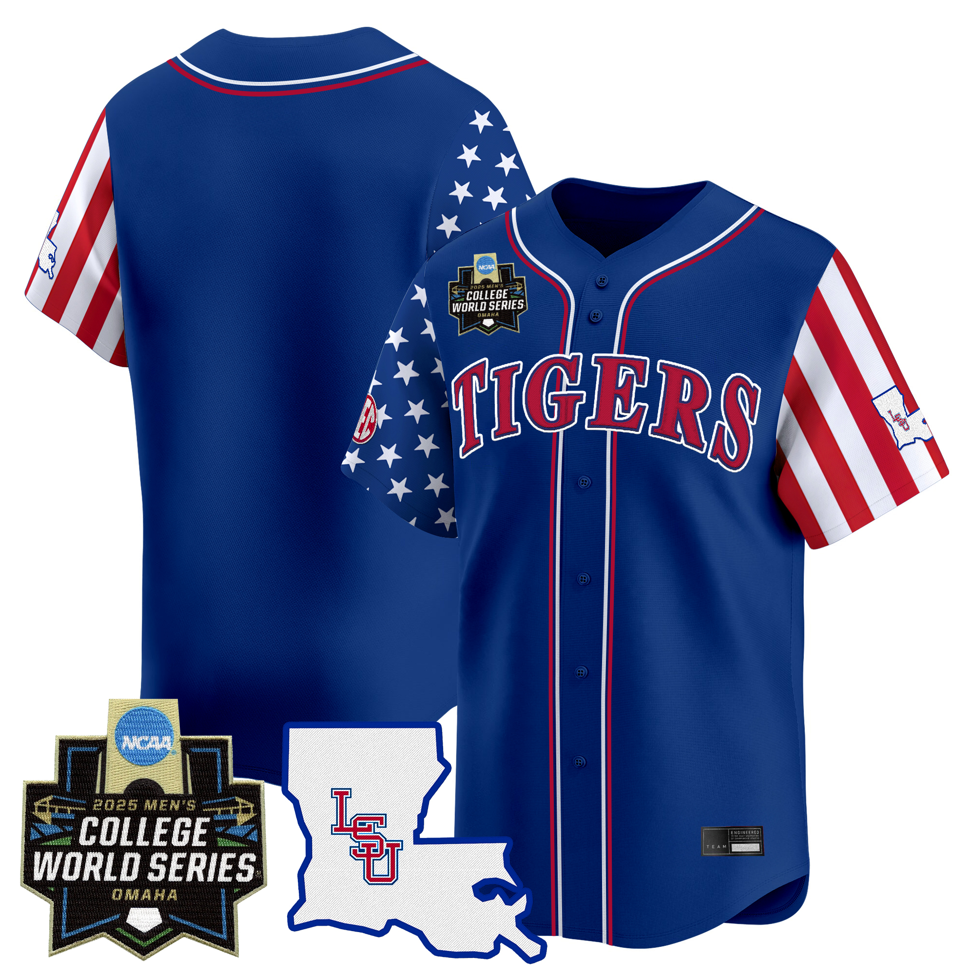 Be the first to review “Casan Evans Men’s LSU Tigers 2025 Independence Day Vapor Premier Limited Royal Jersey – World Series Patch – All Stitched”