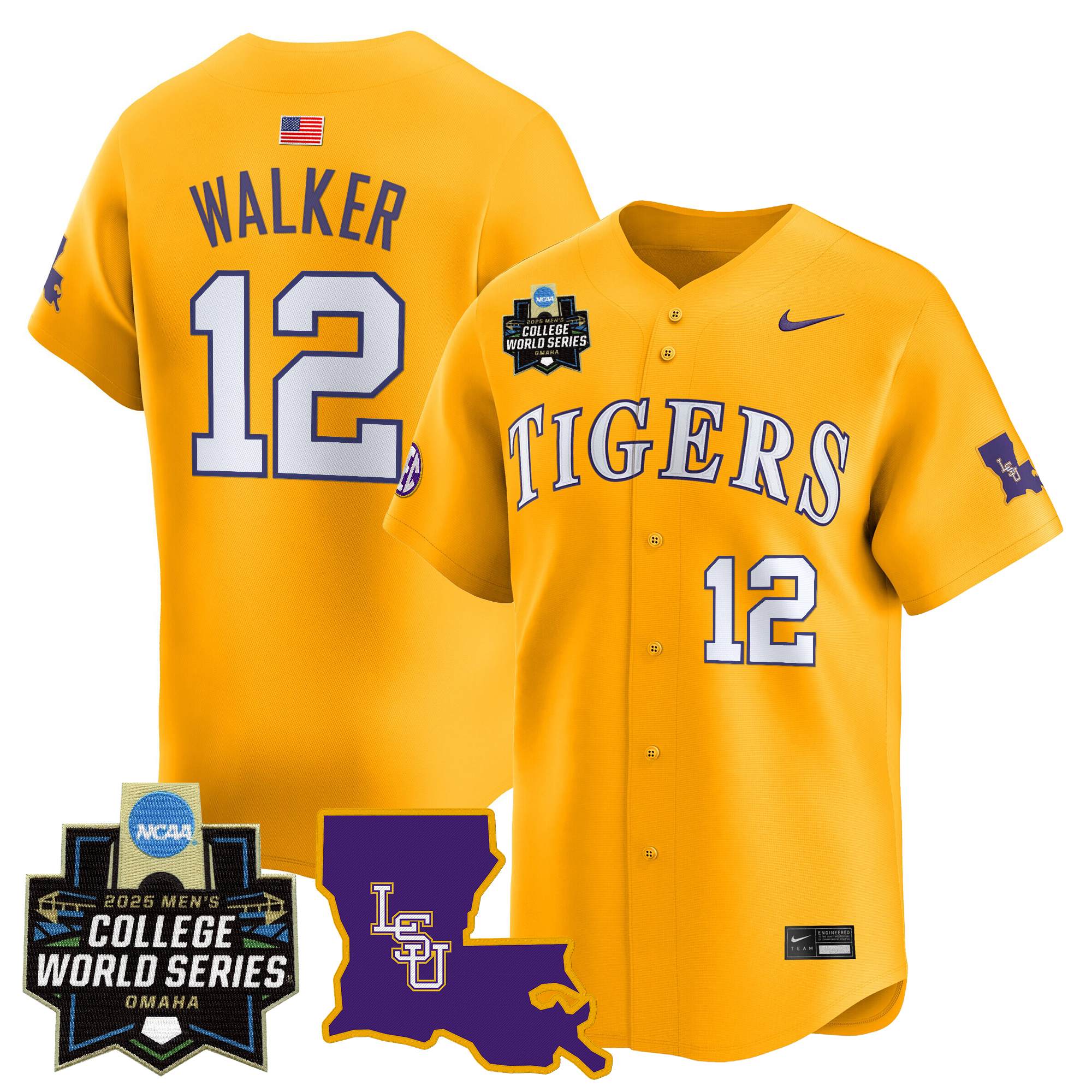 Be the first to review “Casan Evans Men’s LSU Tigers 2025 World Series Vapor Premier Limited Gold Jersey – All Stitched”