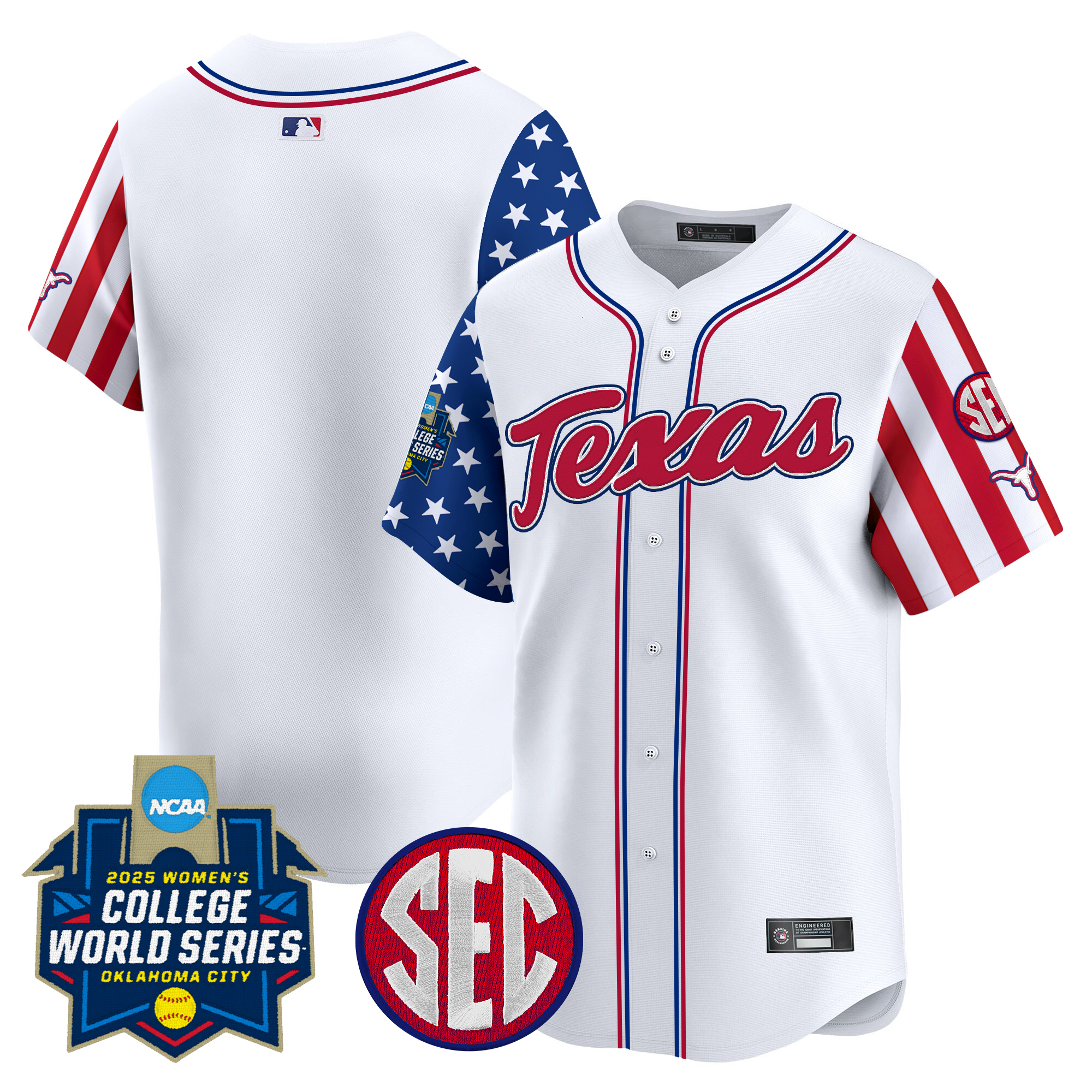 Cat Osterman Men’s size – Texas Longhorns Softball 2025 Independence Day Vapor Premier Limited White Jersey – All Stitched