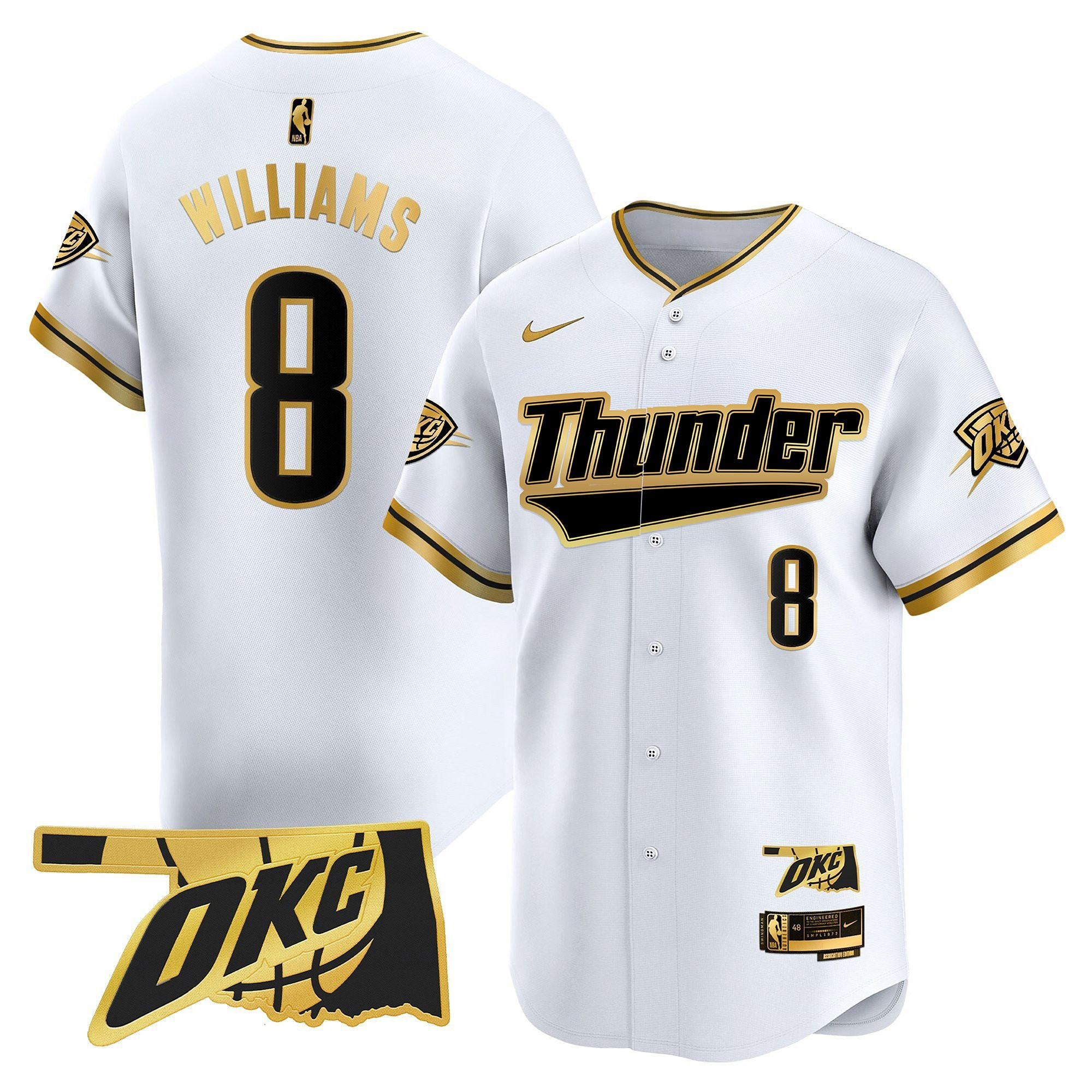 Chet Holmgren Men’s Oklahoma City Thunder Vapor Baseball White Gold Jersey V2 – All Stitched