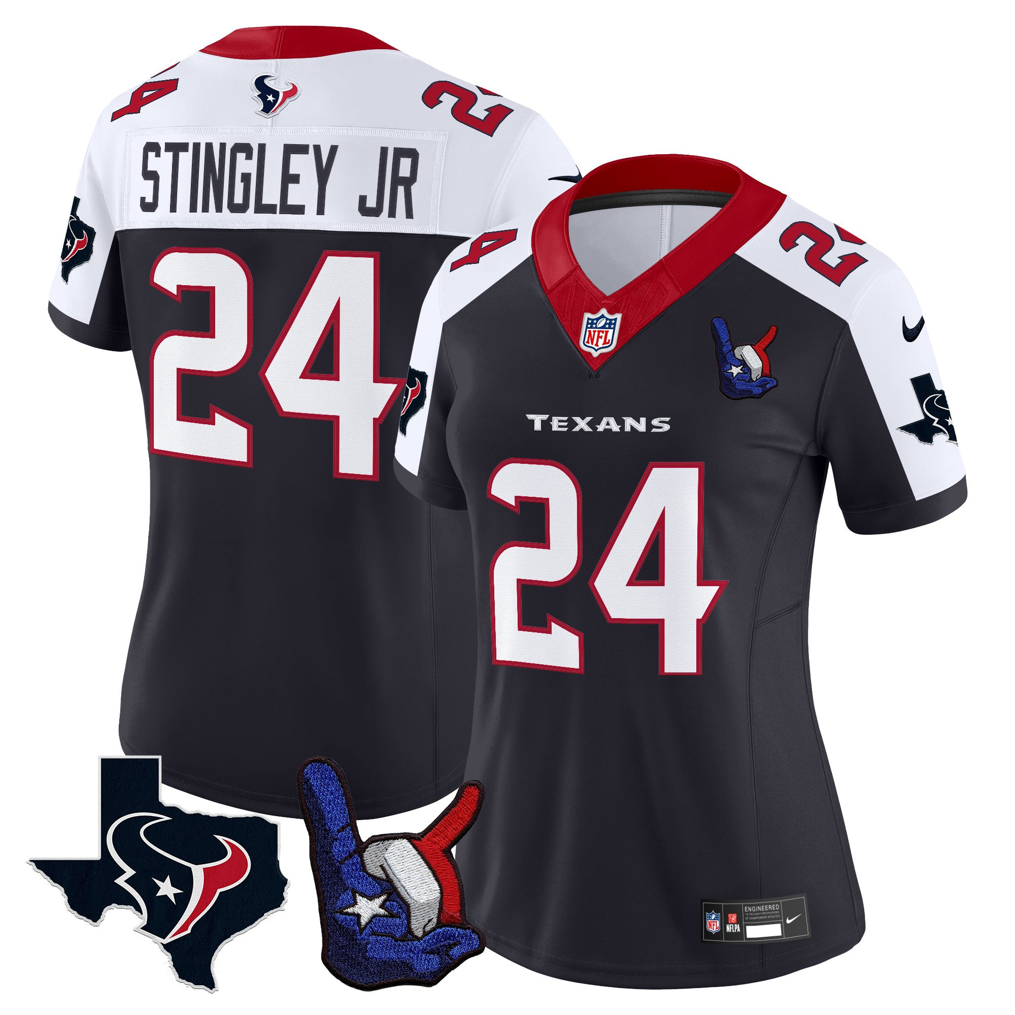 C.J. Stroud Women’s Houston Texans Hand Sign Throwing Up The H Vapor Navy Alternate Jersey – All Stitched