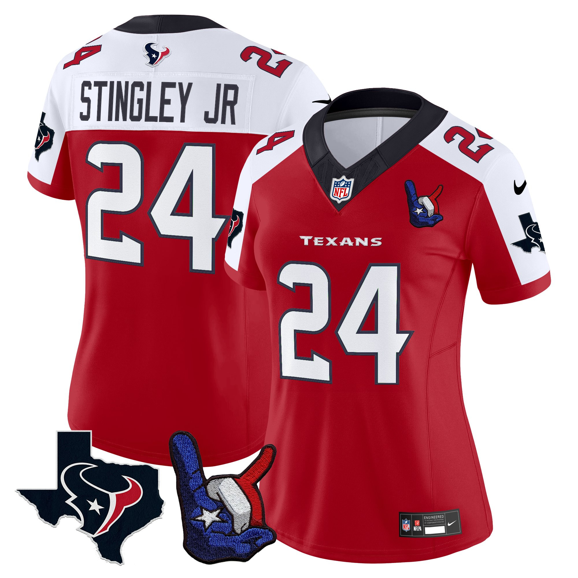 C.J. Stroud Women’s Houston Texans Hand Sign Throwing Up The H Vapor Red Alternate Jersey – All Stitched