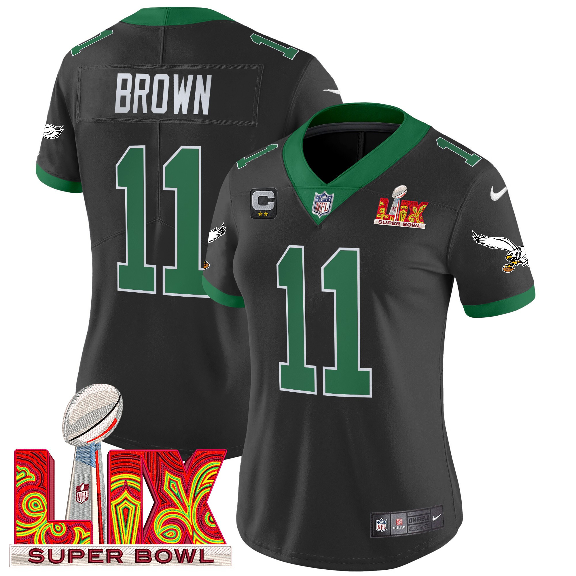 Be the first to review “Cooper DeJean Women’s Philadelphia Eagles Kelly Green Super Bowl LIX Patch Vapor Limited Black Jersey – All Stitched”