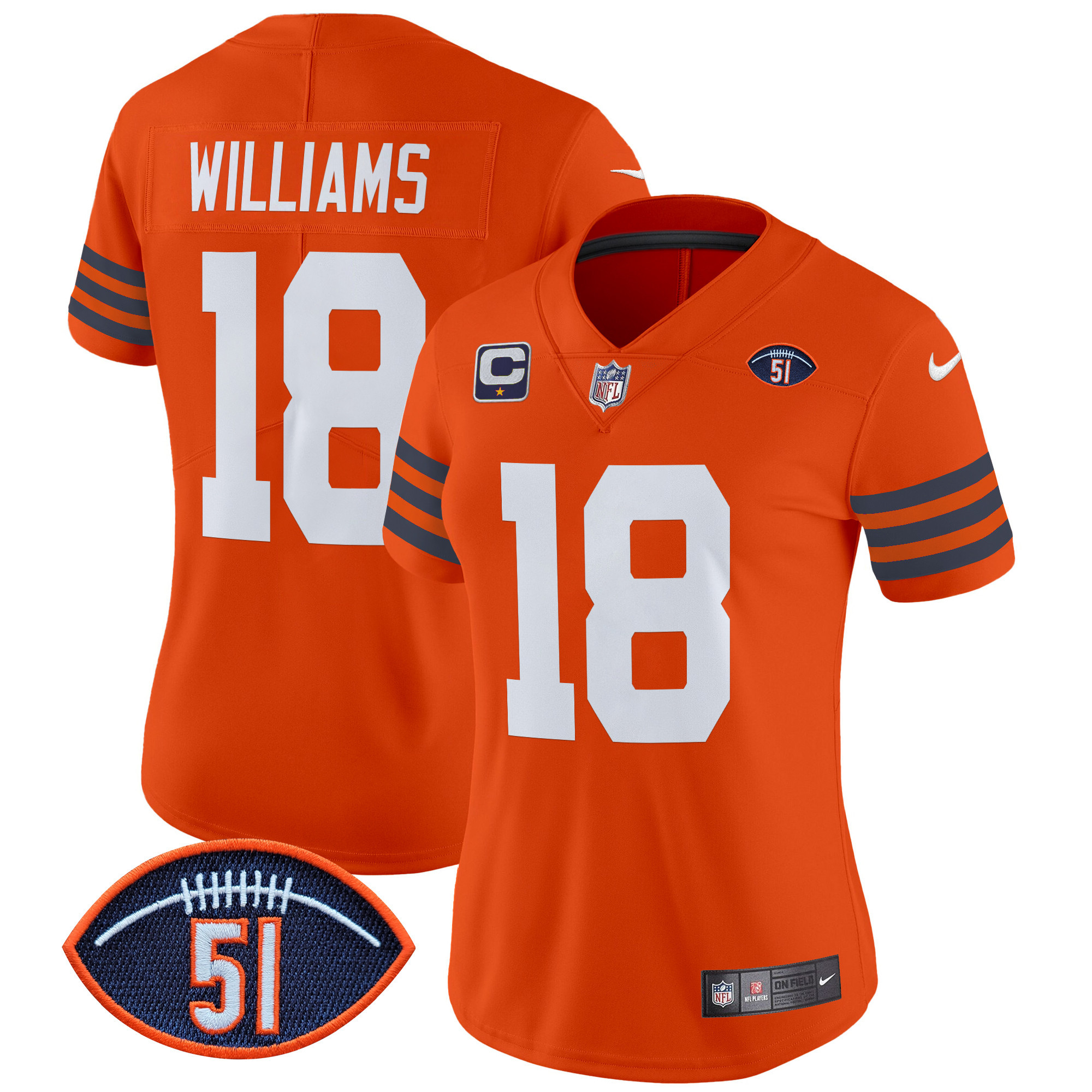 D’Andre Swift Women’s Chicago Bears Dick Butkus Patch Throwback Vapor Limited Orange Jersey – All Stitched