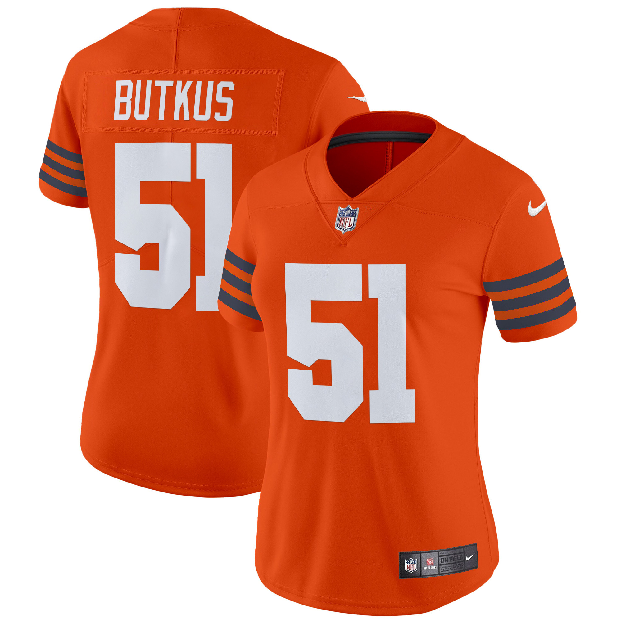 D’Andre Swift Women’s Chicago Bears Throwback Vapor Limited Orange Jersey – All Stitched