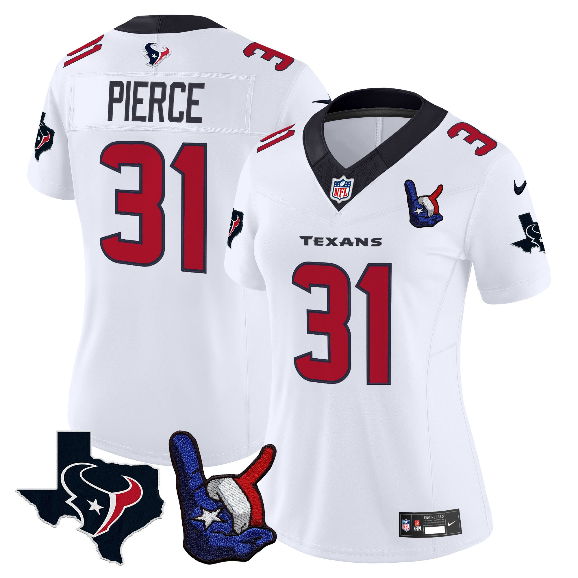 Davis Mills Women’s Houston Texans Hand Sign Throwing Up The H Vapor White Jersey – All Stitched