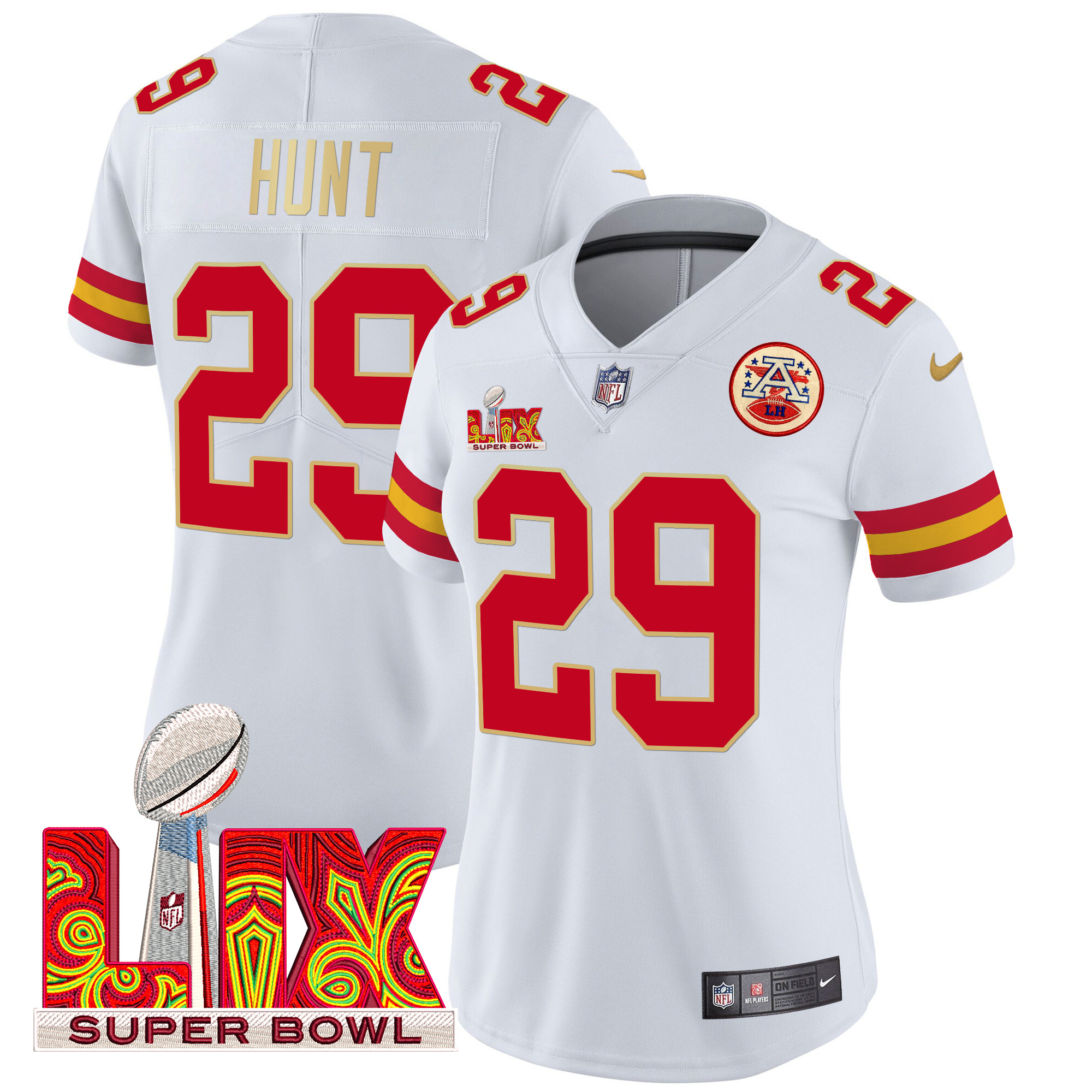 DeAndre Hopkins Women’s Kansas City Chiefs Super Bowl LIX Patch Gold Trim Vapor Limited White Jersey – All Stitched
