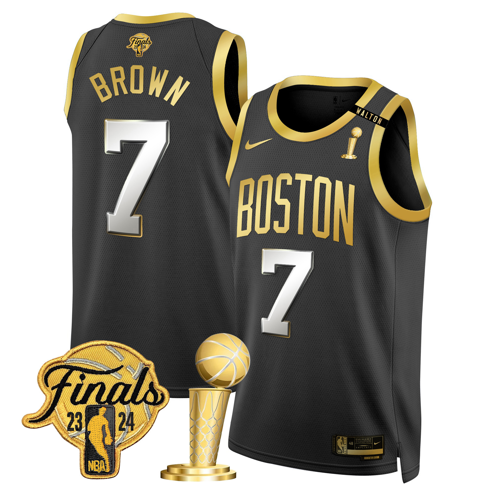Derrick White Men’s Boston Celtics 2024 Final & Champions Patch Swingman Black Gold Jersey V2 – All Stitched