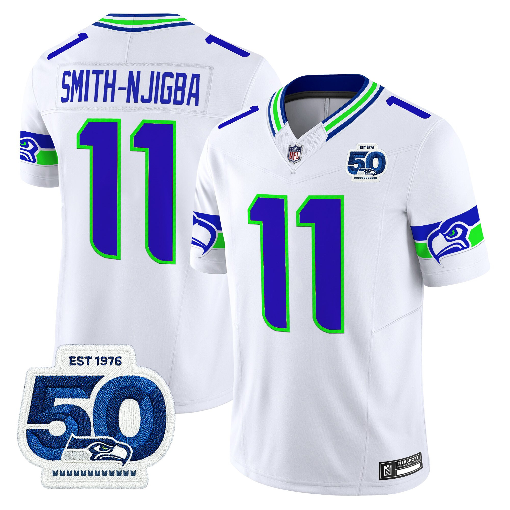 Devon Witherspoon Men’s Seattle Seahawks 50th Anniversary Patch Vapor Limited White Jersey – All Stitched