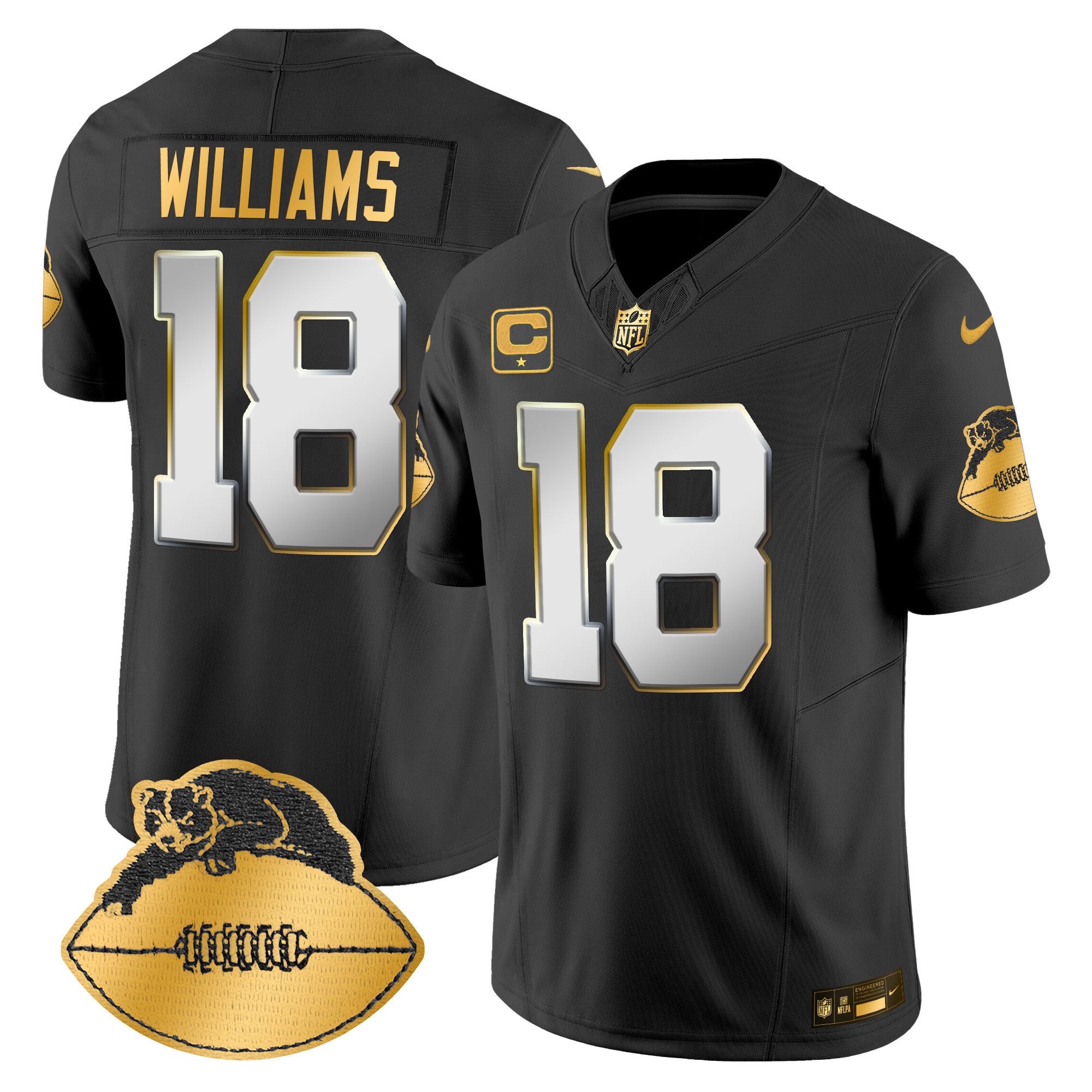 - Embroidered name, numbers and logos