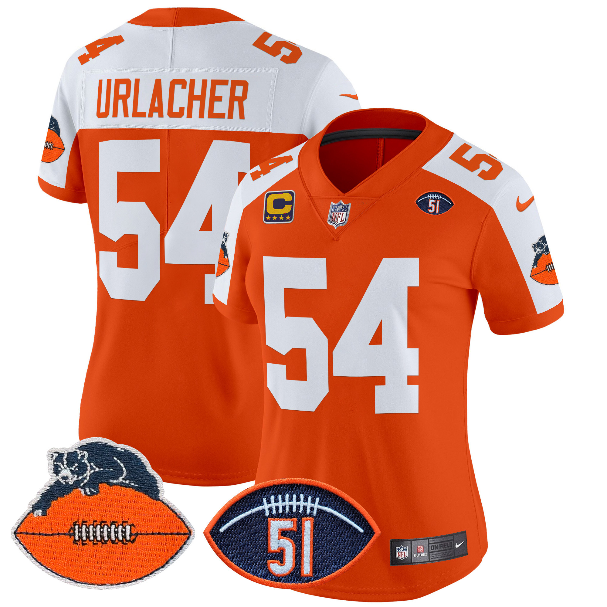 D.J. Moore Women’s Chicago Bears Dick Butkus Patch Throwback Vapor Limited Orange Alternate Jersey – All Stitched