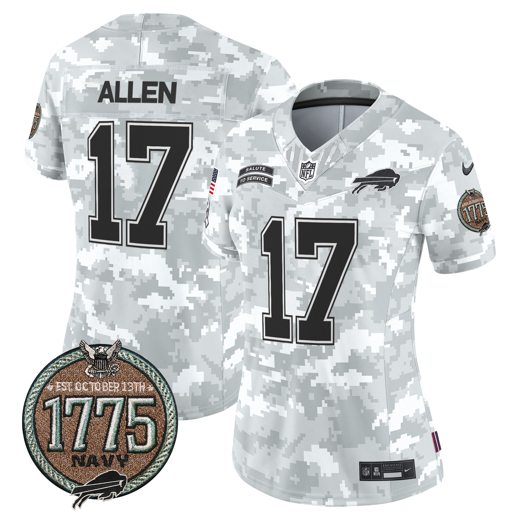 Donald Trump Women’s Buffalo Bills 2024 Salute to Service Establishment Year Patch Vapor Limited Army Jersey – All Stitched