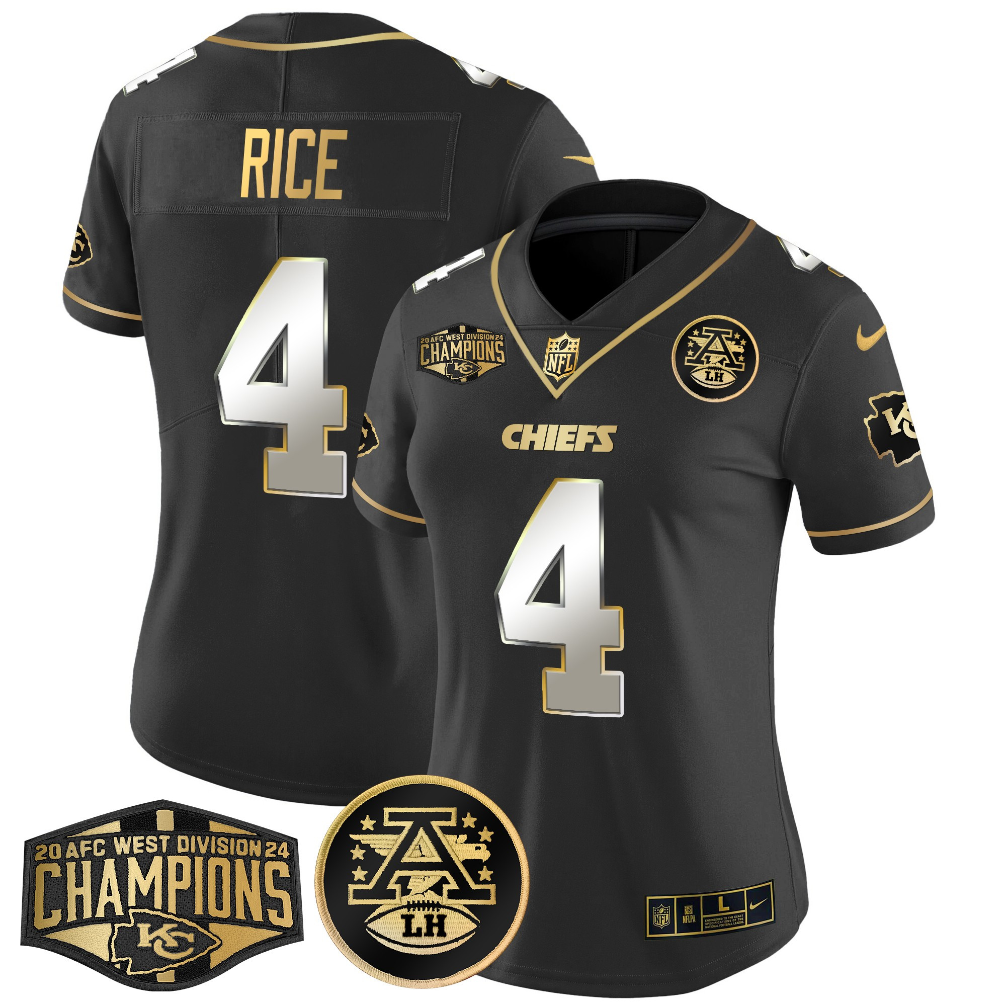 Donald Trump Women’s Kansas City Chiefs 2024 AFC West Division Champions Patch Gold Vapor Limited Black Limited Jersey – All Stitched