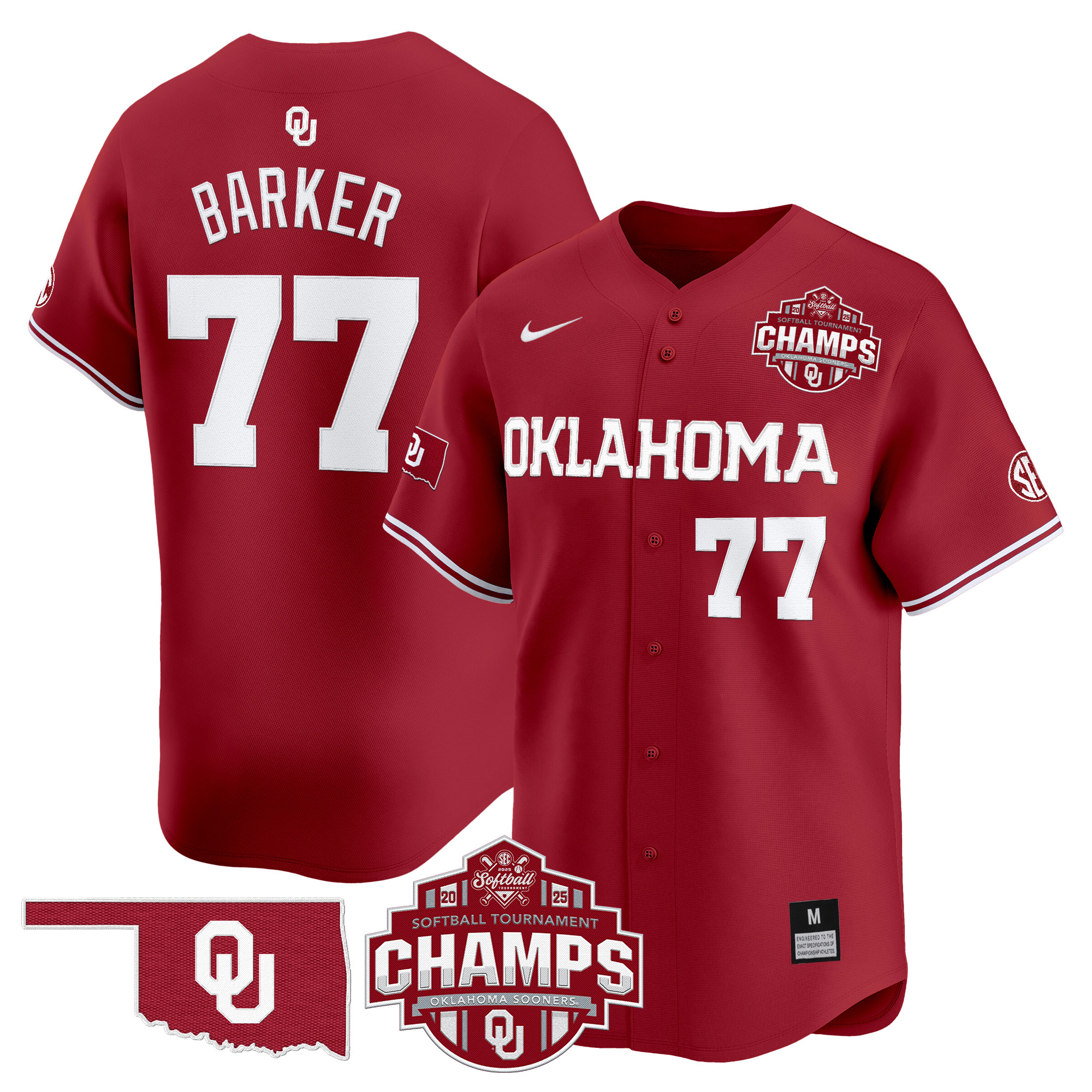 Ella Parker Men’s Size – Oklahoma Sooners 2025 SEC Softball Conference Tournament Champions Patch Vapor Premier Limited Crimson Jersey – All Stitched