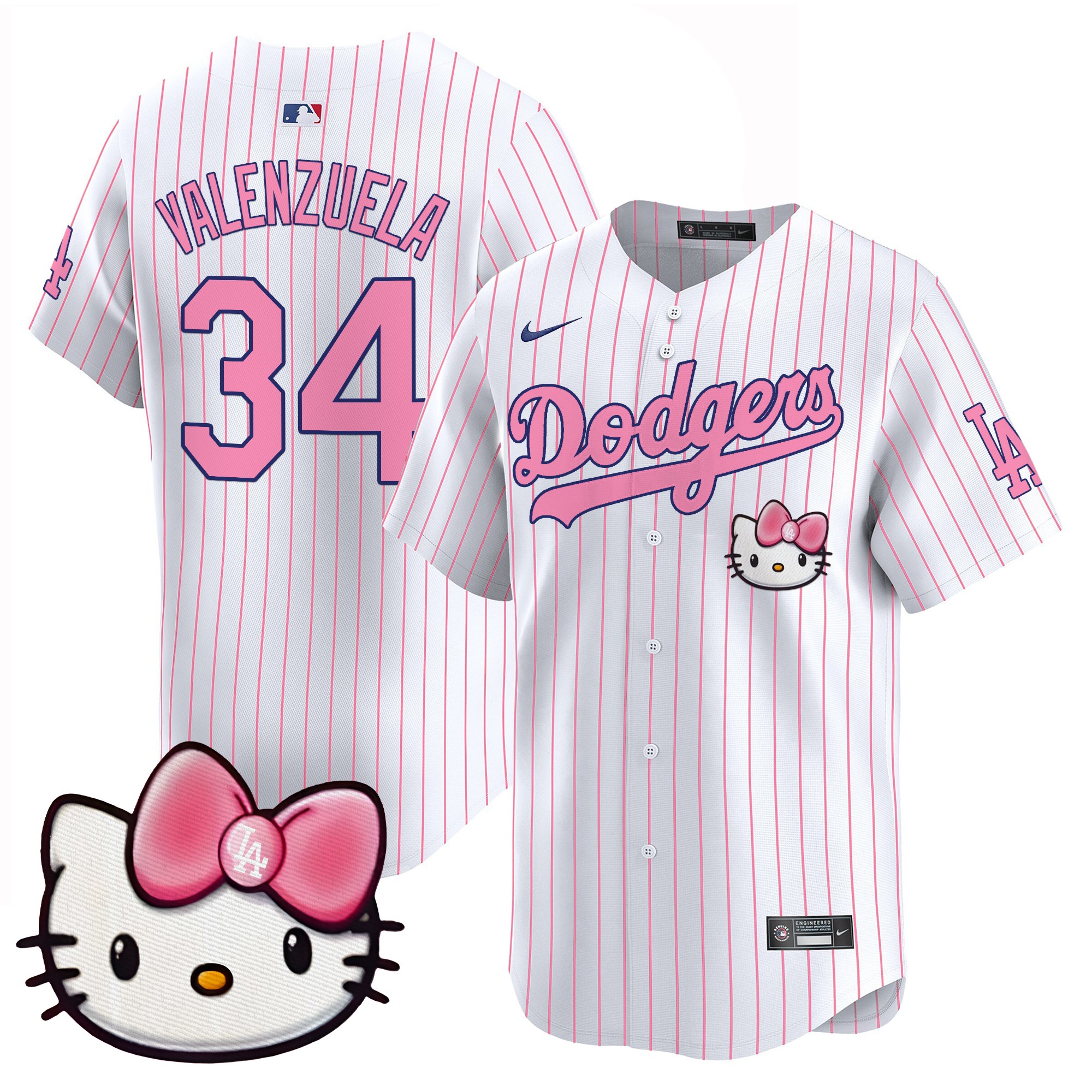 Fernando Valenzuela Unisex Los Angeles Dodgers 2025 Hello Kitty Vapor Premier Limited Pinstripe Jersey – All Stitched