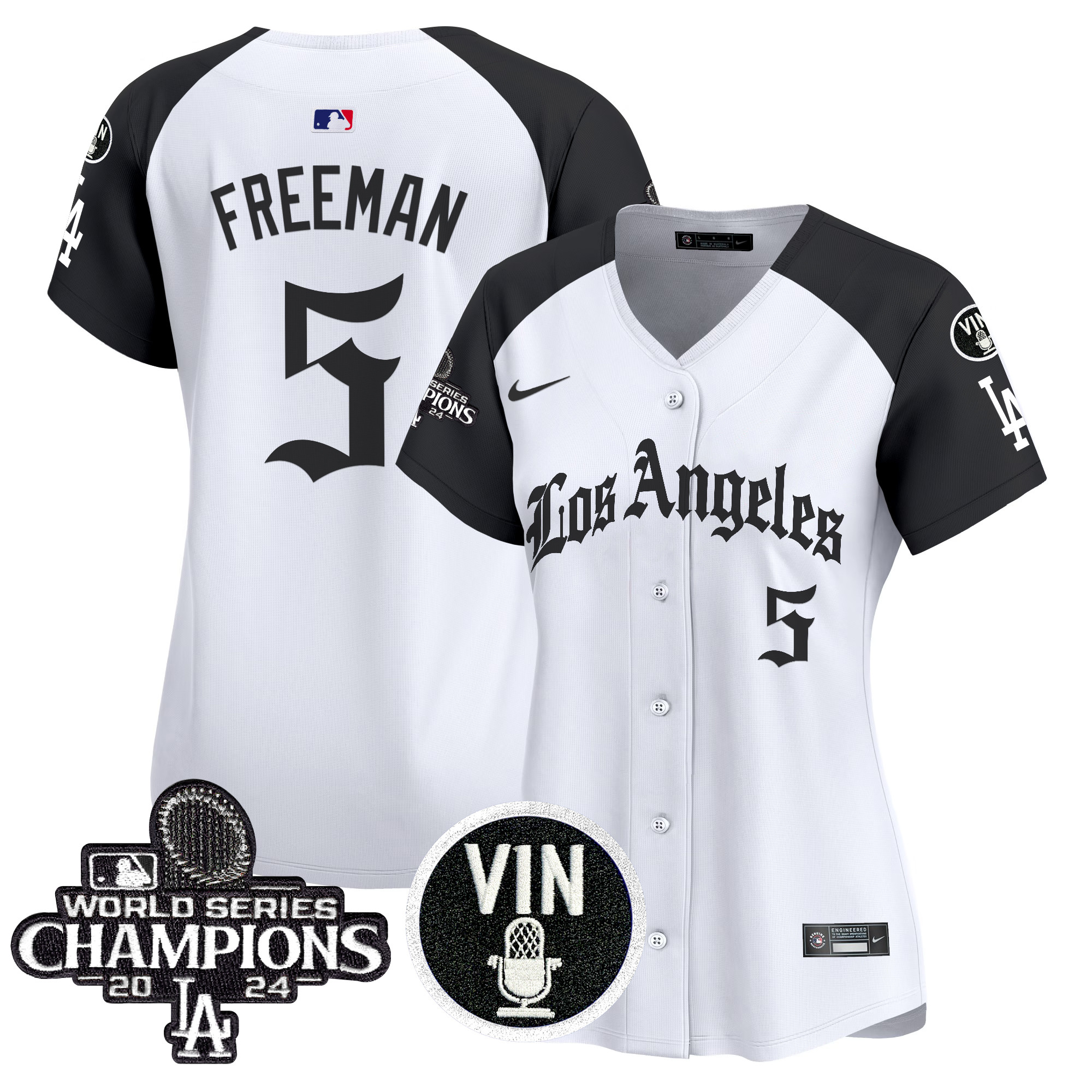 Freddie Freeman Women’s Los Angeles Dodgers 2025 LA Gothic Style Vapor Premier Limited Alternate Jersey – All Stitched