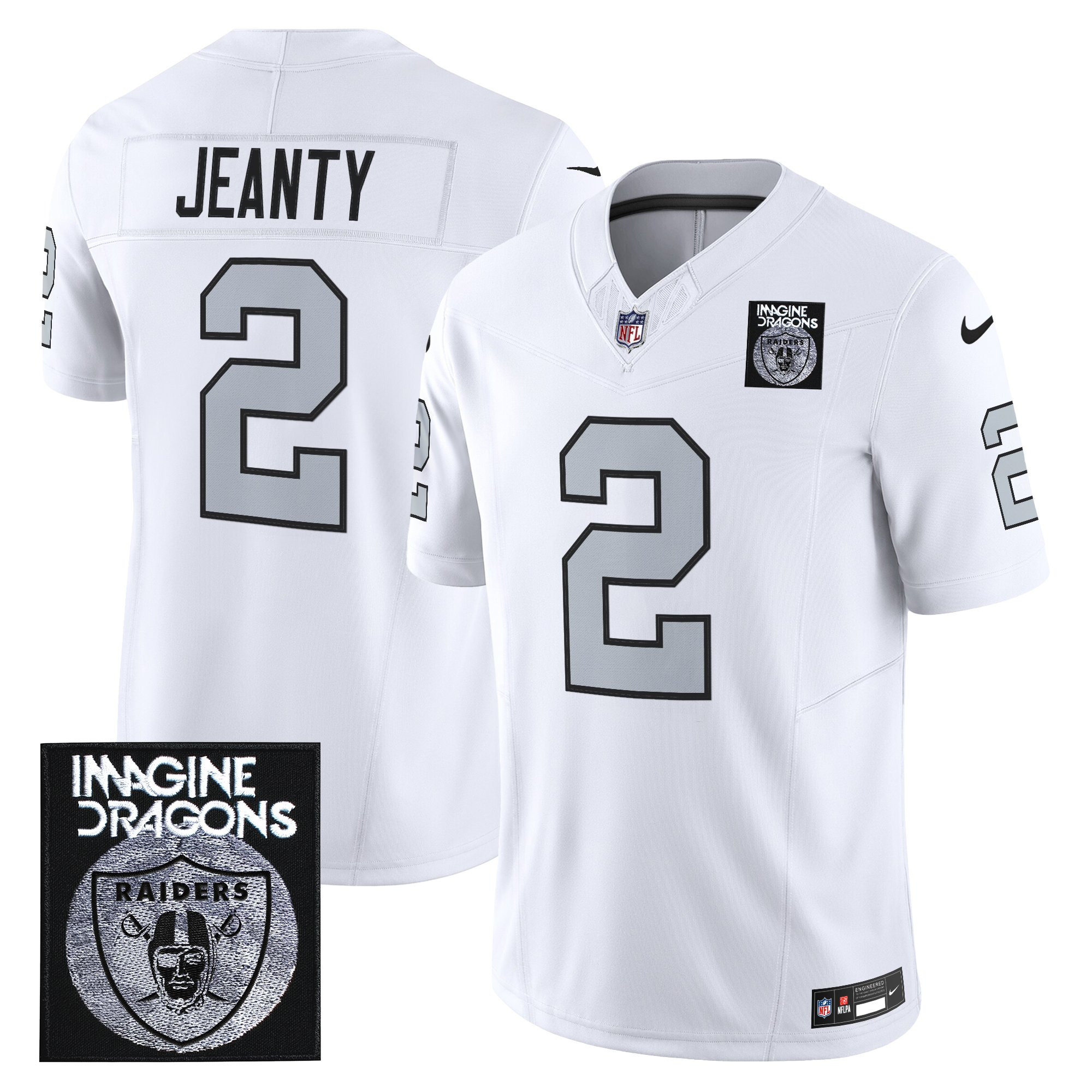 Geno Smith Men’s Imagine Dragons x Las Vegas Raiders Vapor Limited White Jersey – All Stitched