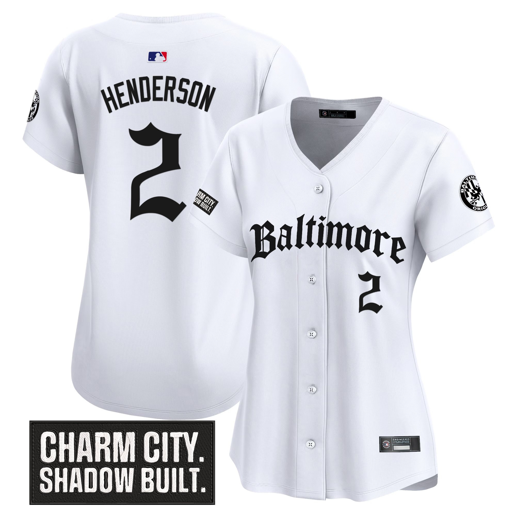 Gunnar Henderson Women’s Baltimore Orioles ‘Gothic Harbor Edition’ Vapor Premier Limited White Jersey – All Stitched