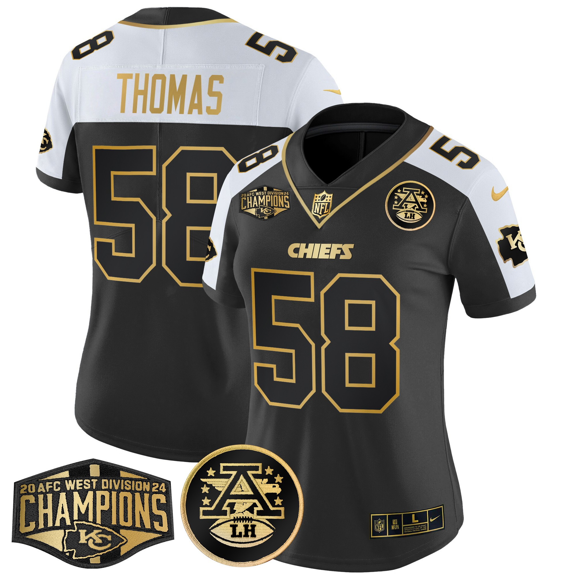 Isiah Pacheco Women’s Kansas City Chiefs 2024 AFC West Division Champions Patch Gold Vapor Limited Alternate Jersey – All Stitched