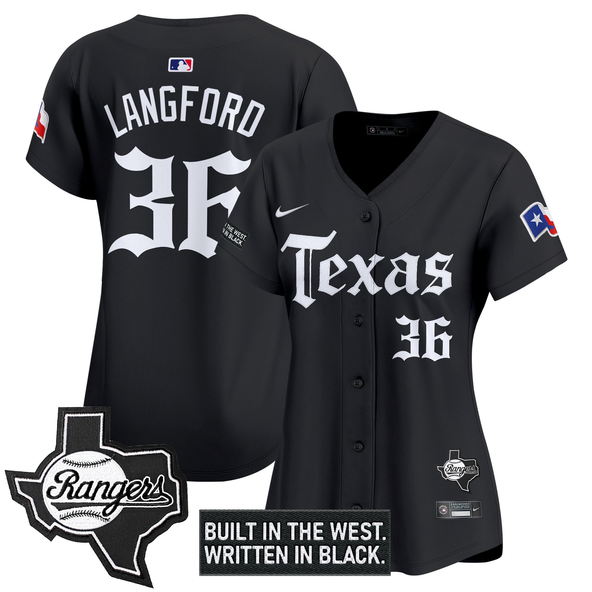 Jake Burger Women’s Texas Rangers ‘Gothic Frontier Edition’ Vapor Premier Limited Black Jersey – All Stitched