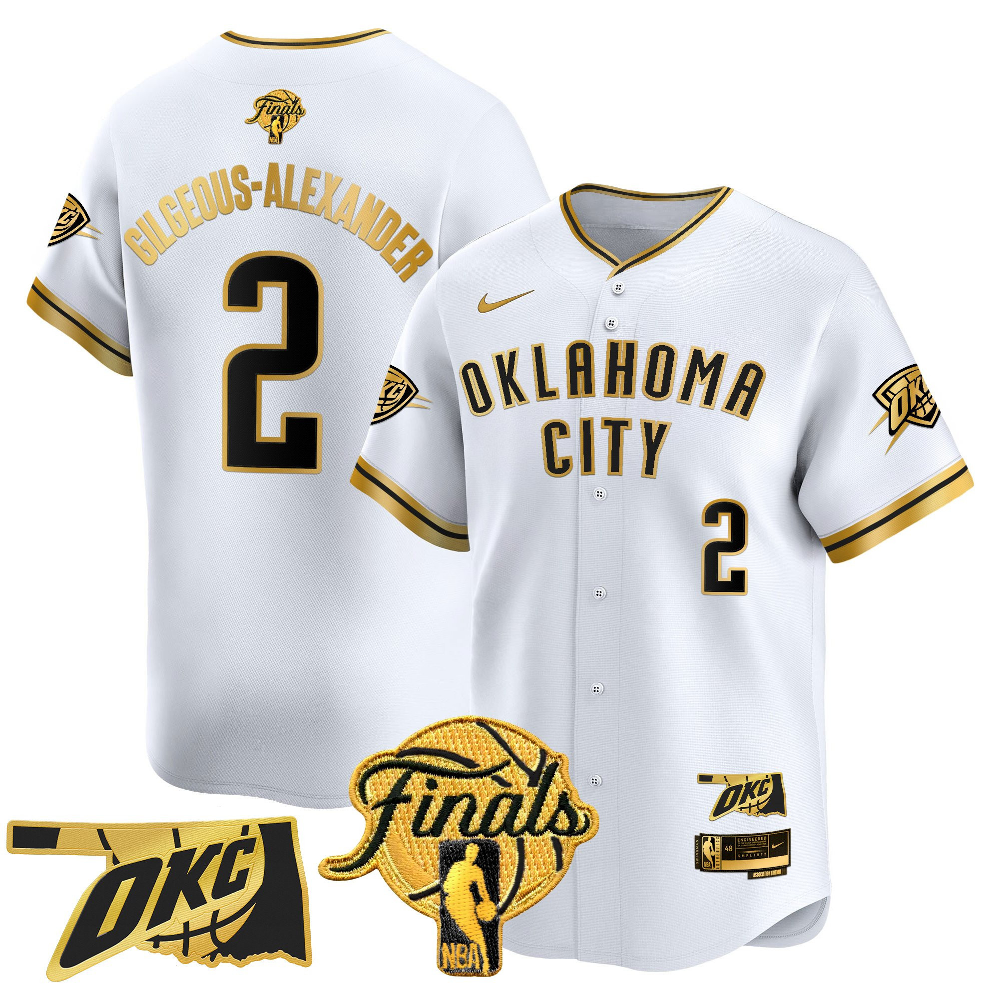 Jalen Williams Men’s Oklahoma City Thunder 2025 Finals Vapor Baseball White Gold Jersey – All Stitched