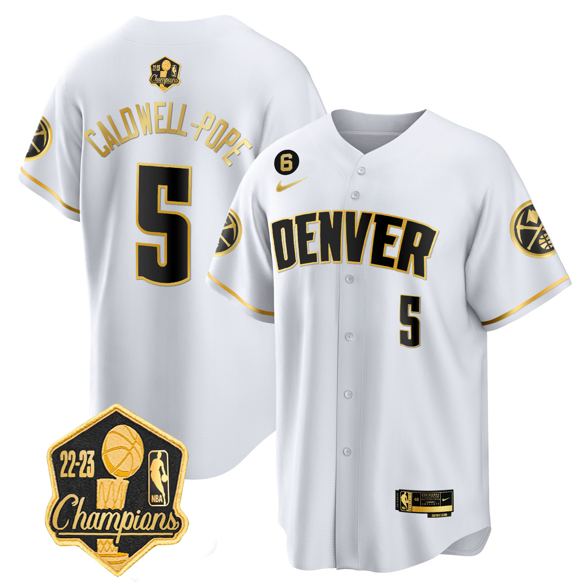 Jamal Murray Men’s Denver Nuggets 2023 Champions Limited Patch Cool Base White Gold Jersey – All Stitched
