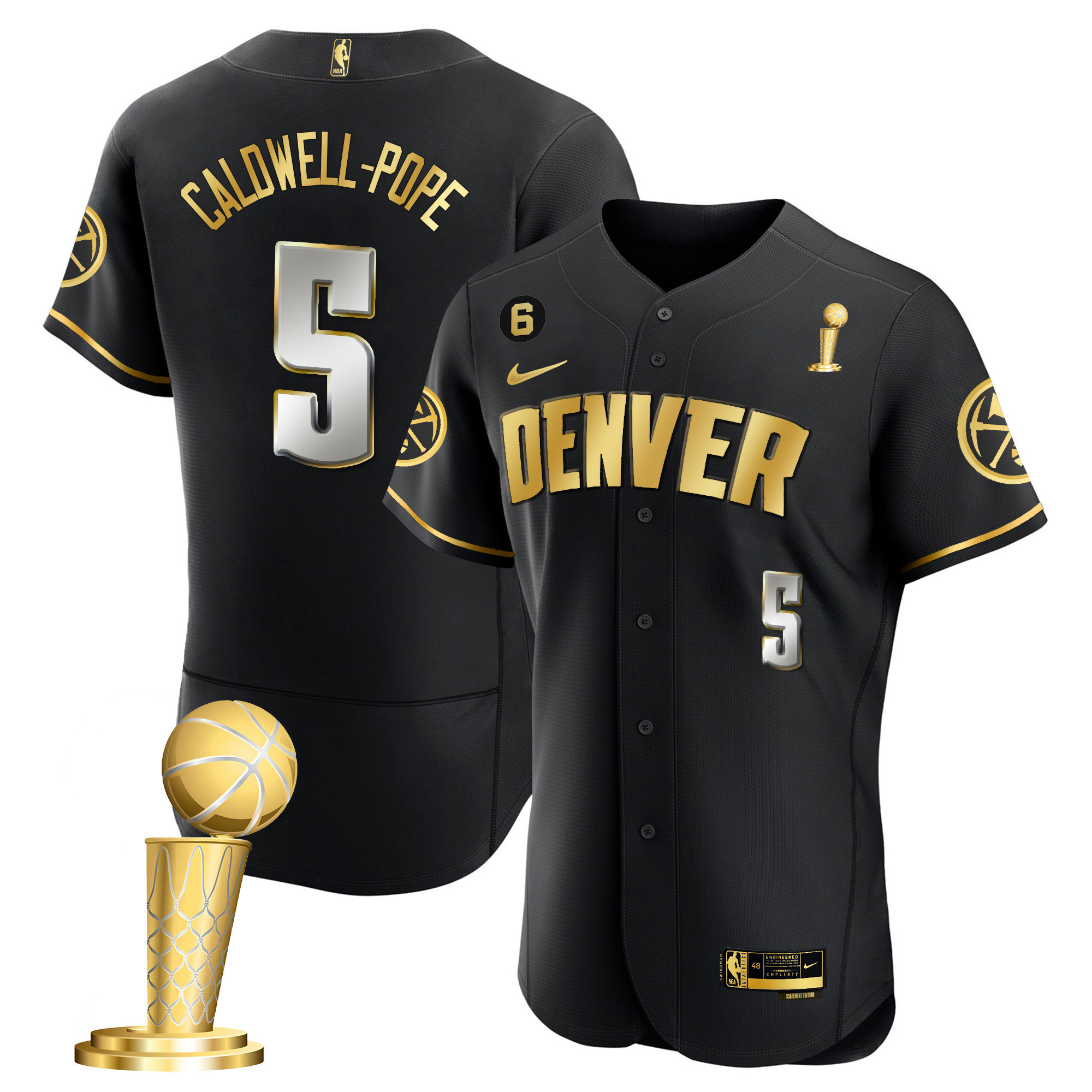 Jamal Murray Youth’s Denver Nuggets 2023 Champions Flex Base Black Limited Jersey – All Stitched