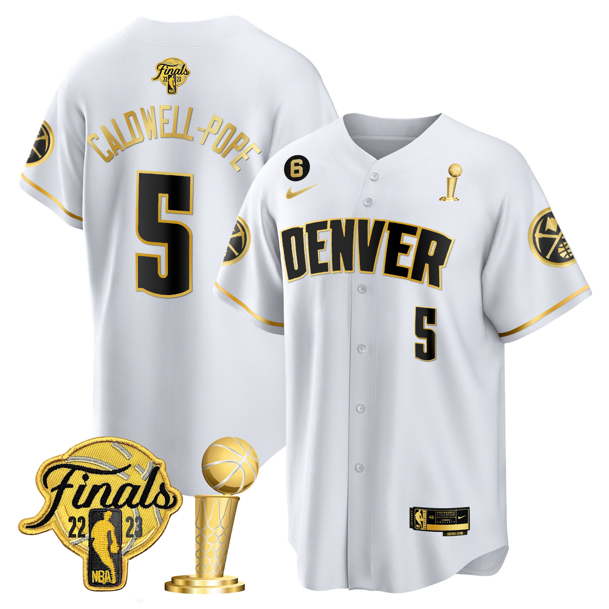 Jamal Murray Youth’s Denver Nuggets 2023 Finals & Champions Patch Cool Base White Gold Jersey – All Stitched