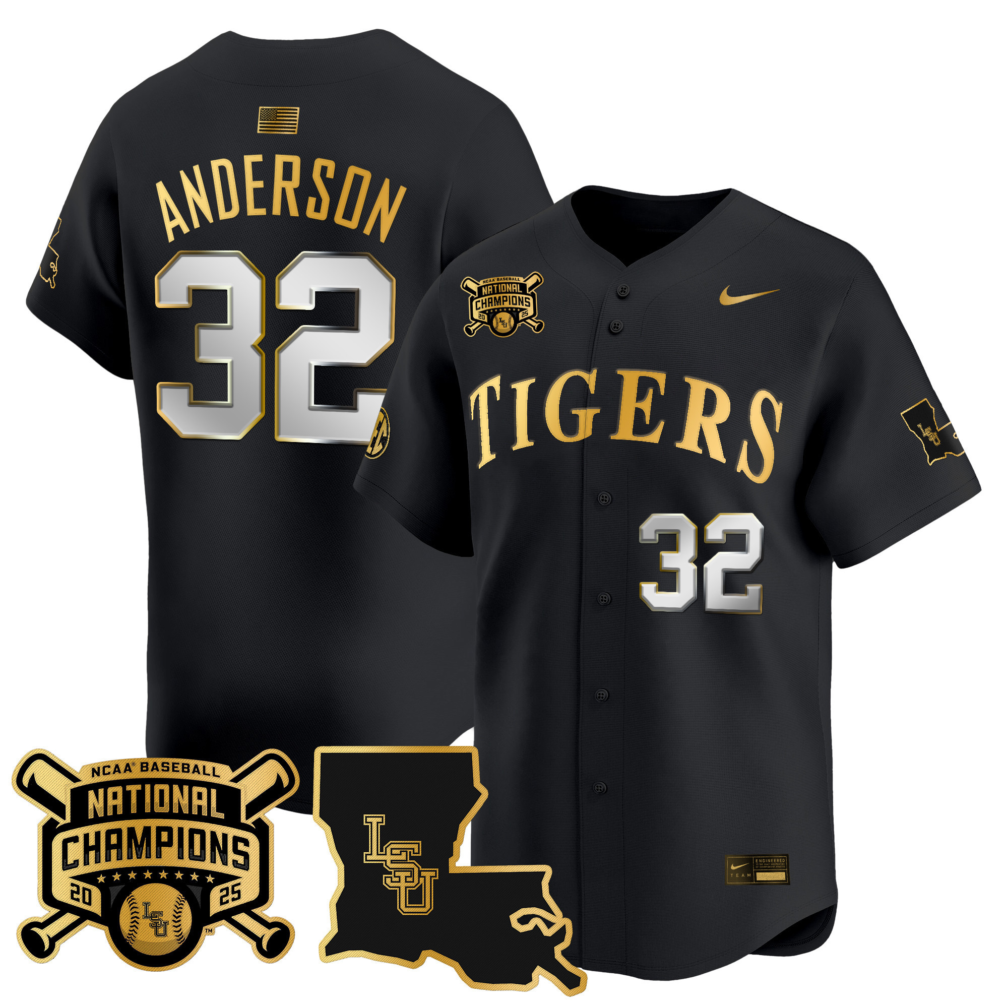Jared Jones Men’s LSU Tigers 2025 College World Series Champions Gold Vapor Premier Limited Black Gold Jersey – All Stitched