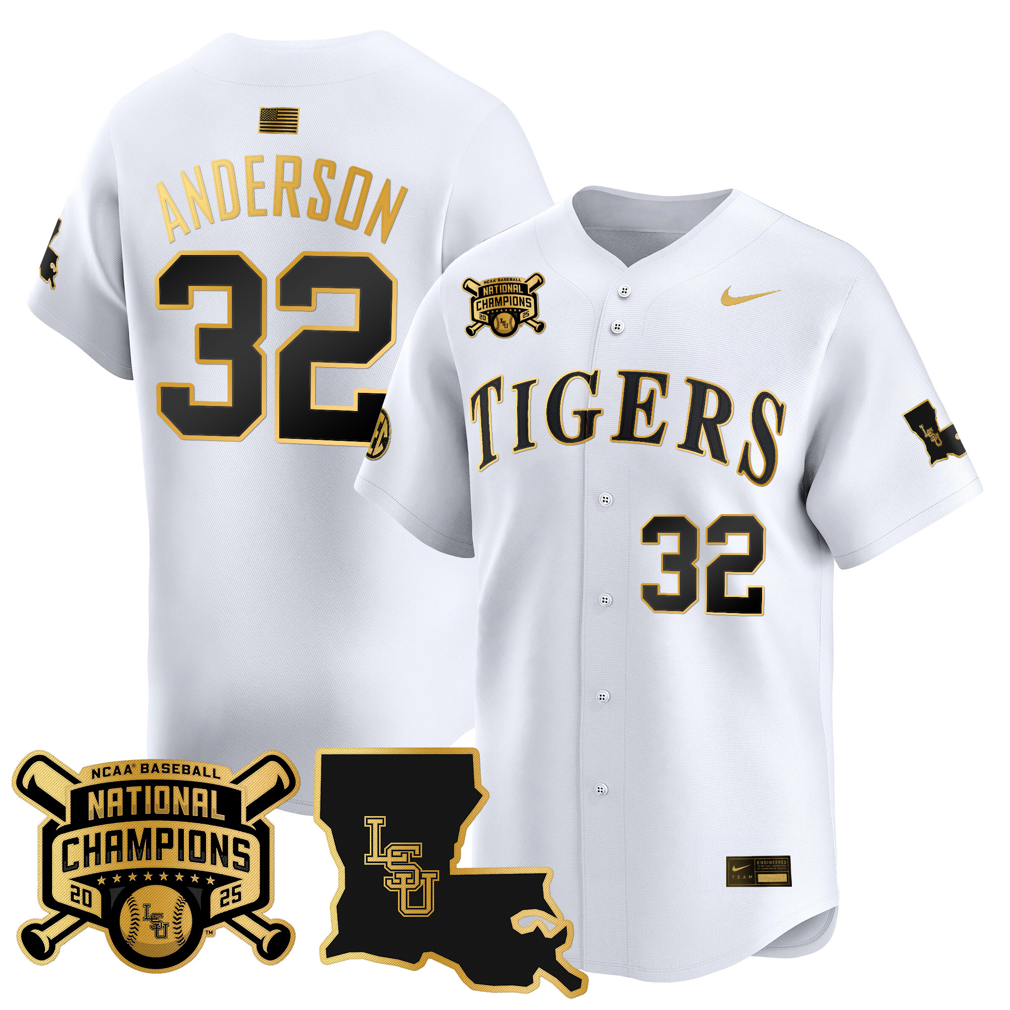 Jared Jones Men’s LSU Tigers 2025 College World Series Champions Gold Vapor Premier Limited White Gold Jersey – All Stitched