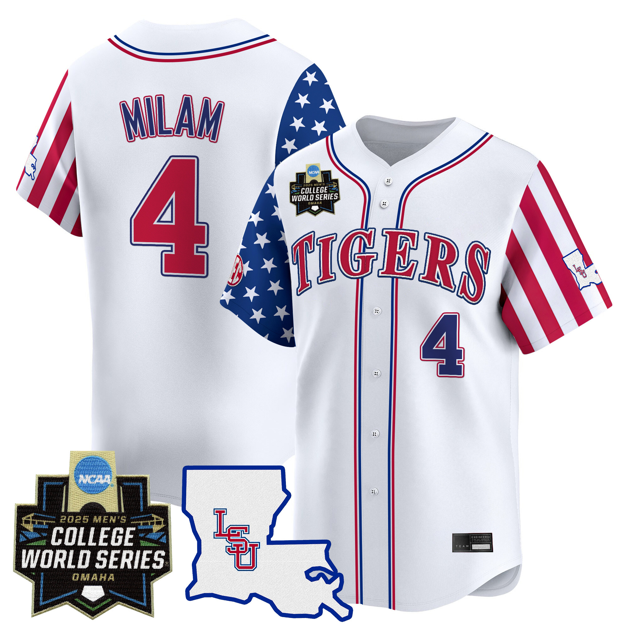 Be the first to review “Jared Jones Men’s LSU Tigers 2025 Independence Day Vapor Premier Limited White Jersey – World Series Patch – All Stitched”