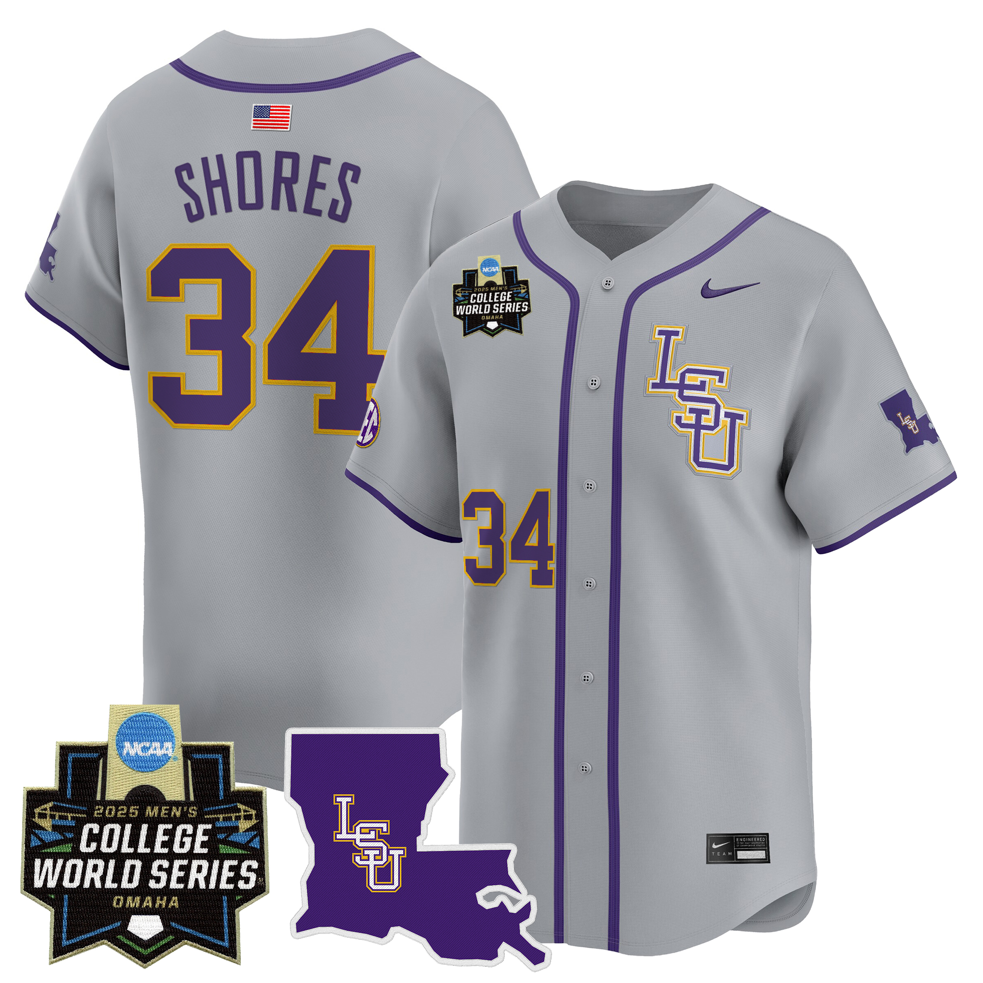 Jared Jones Men’s LSU Tigers 2025 World Series Vapor Premier Limited Gray Jersey – All Stitched