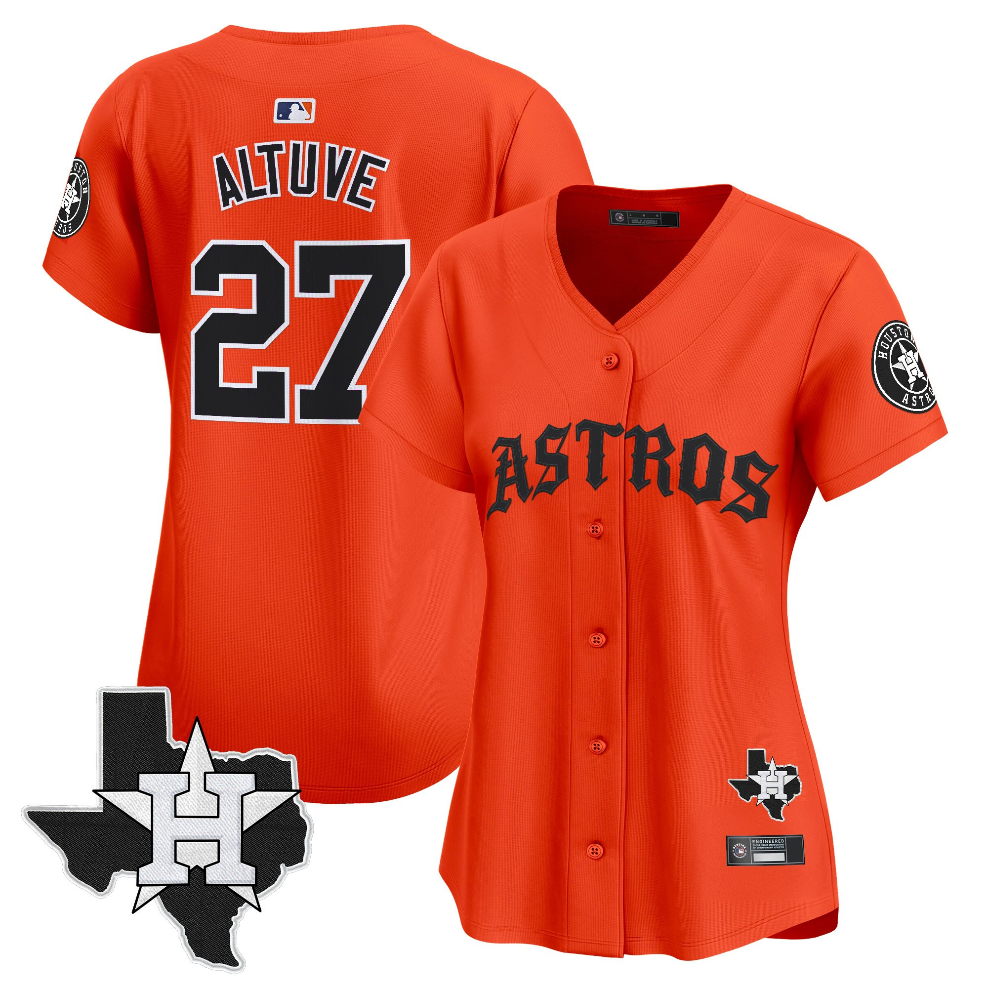 Jeremy Pena Women’s Houston Astros ‘Old English Edition’ Vapor Premier Limited Orange Jersey – All Stitched