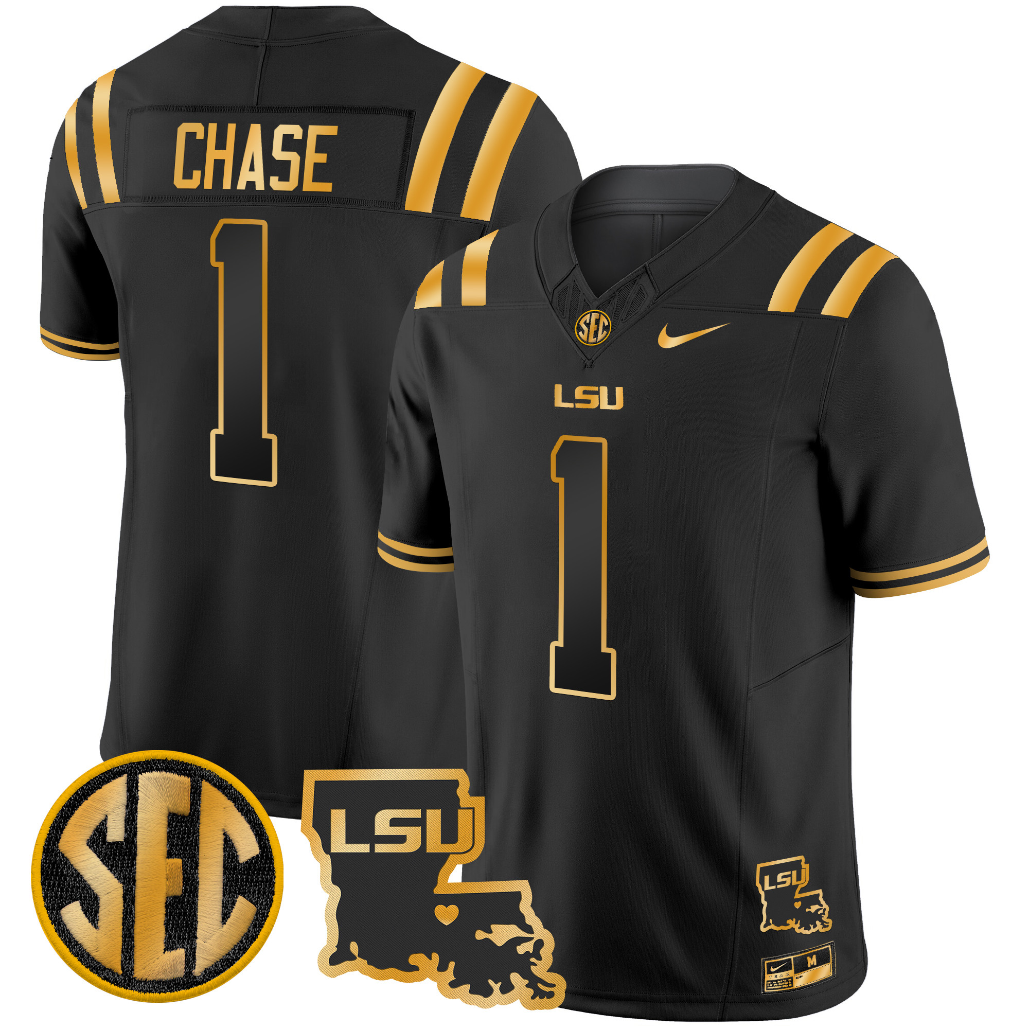 Joe Burrow Men’s LSU Tigers 2025 Louisiana Patch Gold Vapor Limited Black Gold Jersey – All Stitched