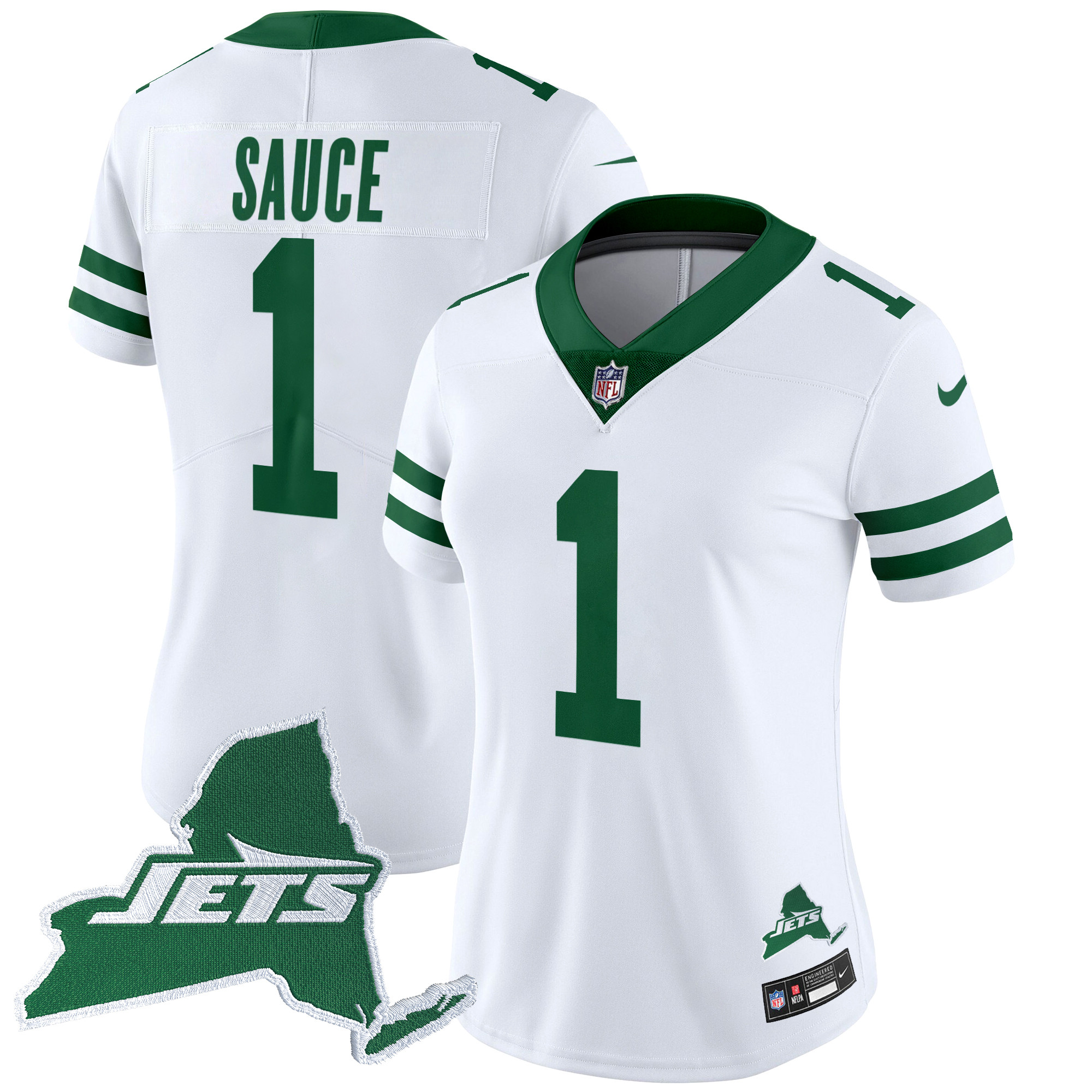 Joe Namath Women’s New York Jets Home Patch Vapor Legacy Limited White Jersey – All Stitched